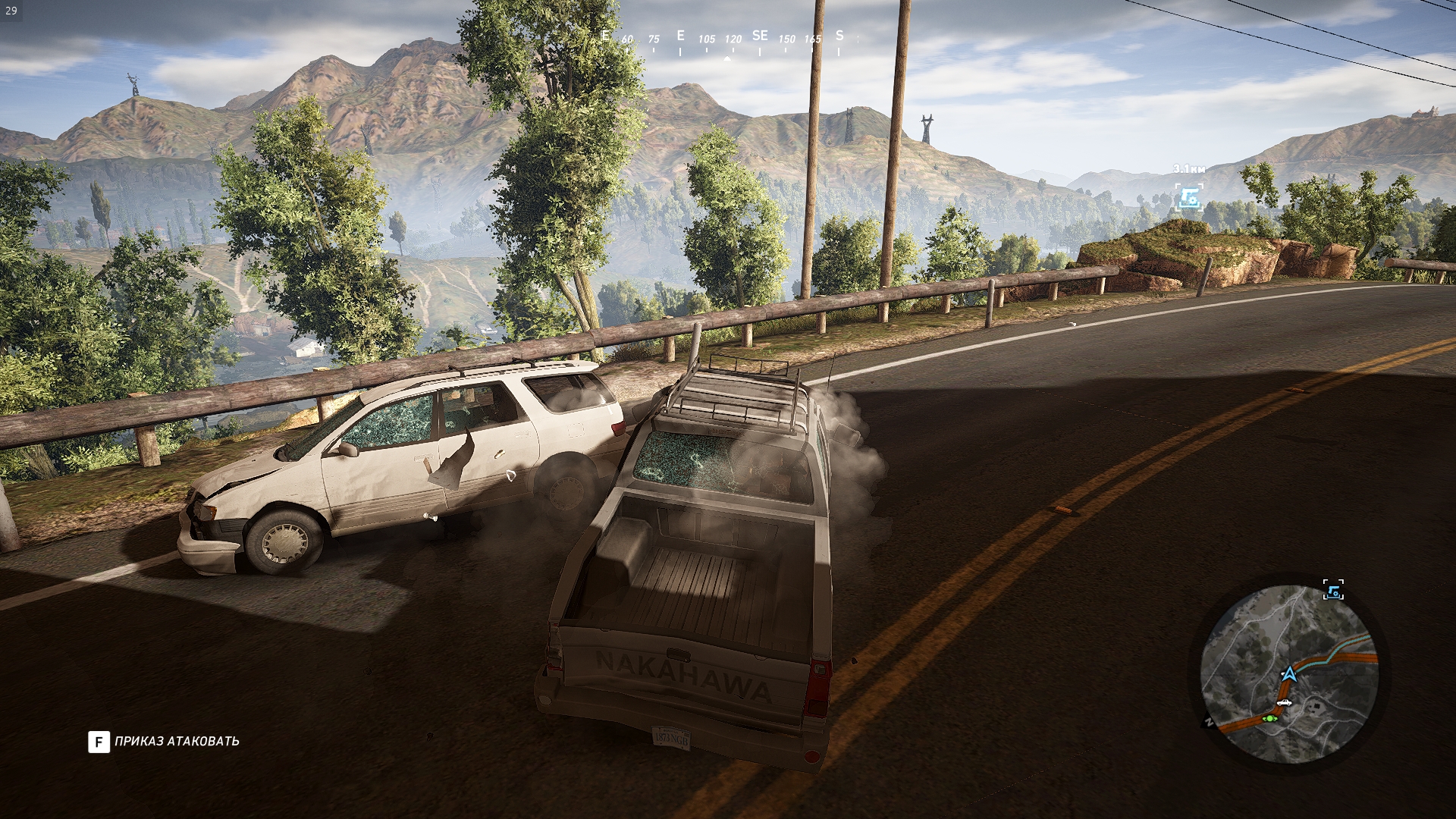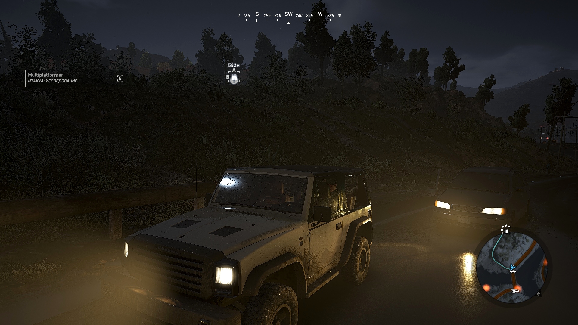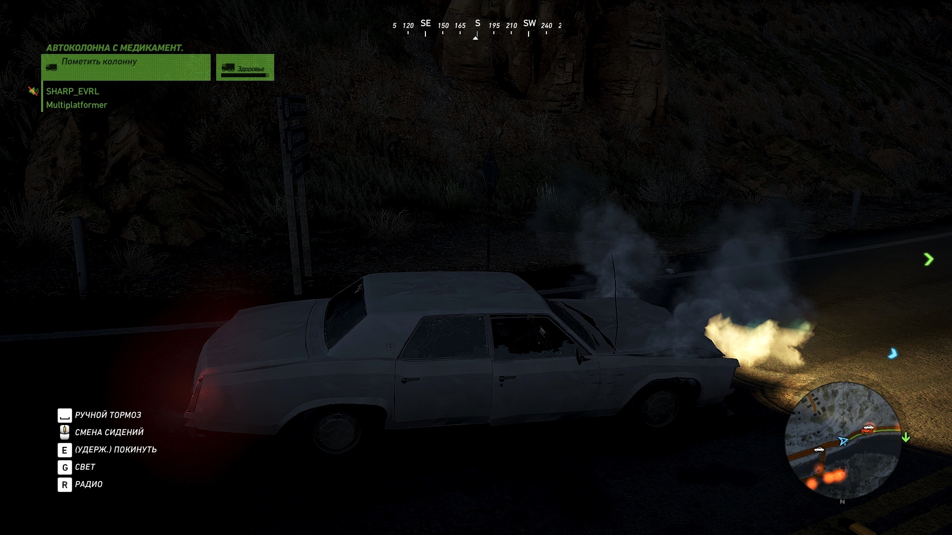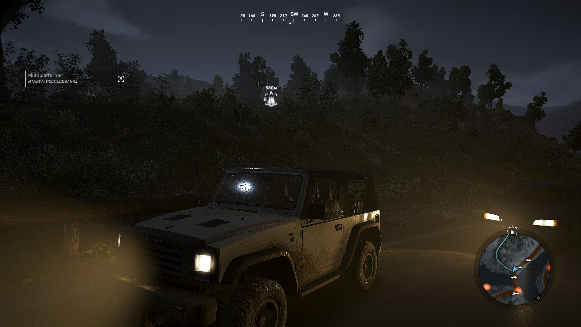 2. Опять же сильный косяк автомобилей. Даже два в одном. В игре есть повреждения автомобилей, и визуально они смотрятся очень достойно, но при этом, действие, при котором мнётся авто, напоминает GTA San Andreas, где при лёгком ударе у вас по скрипту трескалась лобовуха или мялись двери. Но самое главное, что при лобовом ударе вы мнёте перед и, разумеется, разбиваете фары. Но игра не знает, что когда фары разбиваются, они не могут светить. И выглядит это очень смешно, фар нет — а свет они всё равно выдают.