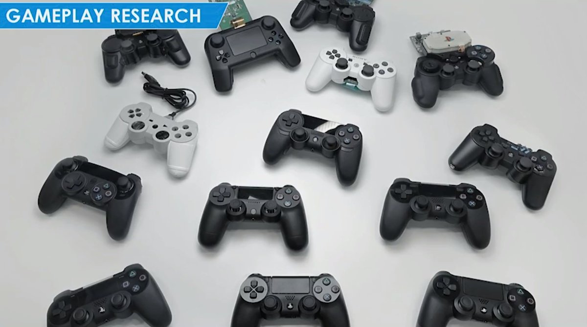 Помимо контроллеров, очень напоминающих современную версию DualShock 4, на фотографии можно увидеть несколько необычных геймпадов. Здесь есть контроллер с гигантским тач-скрином и отладочной платой, устройства вообще без тач-скринов и геймпады, напоминающие DualShock 2 и DualShock 3.