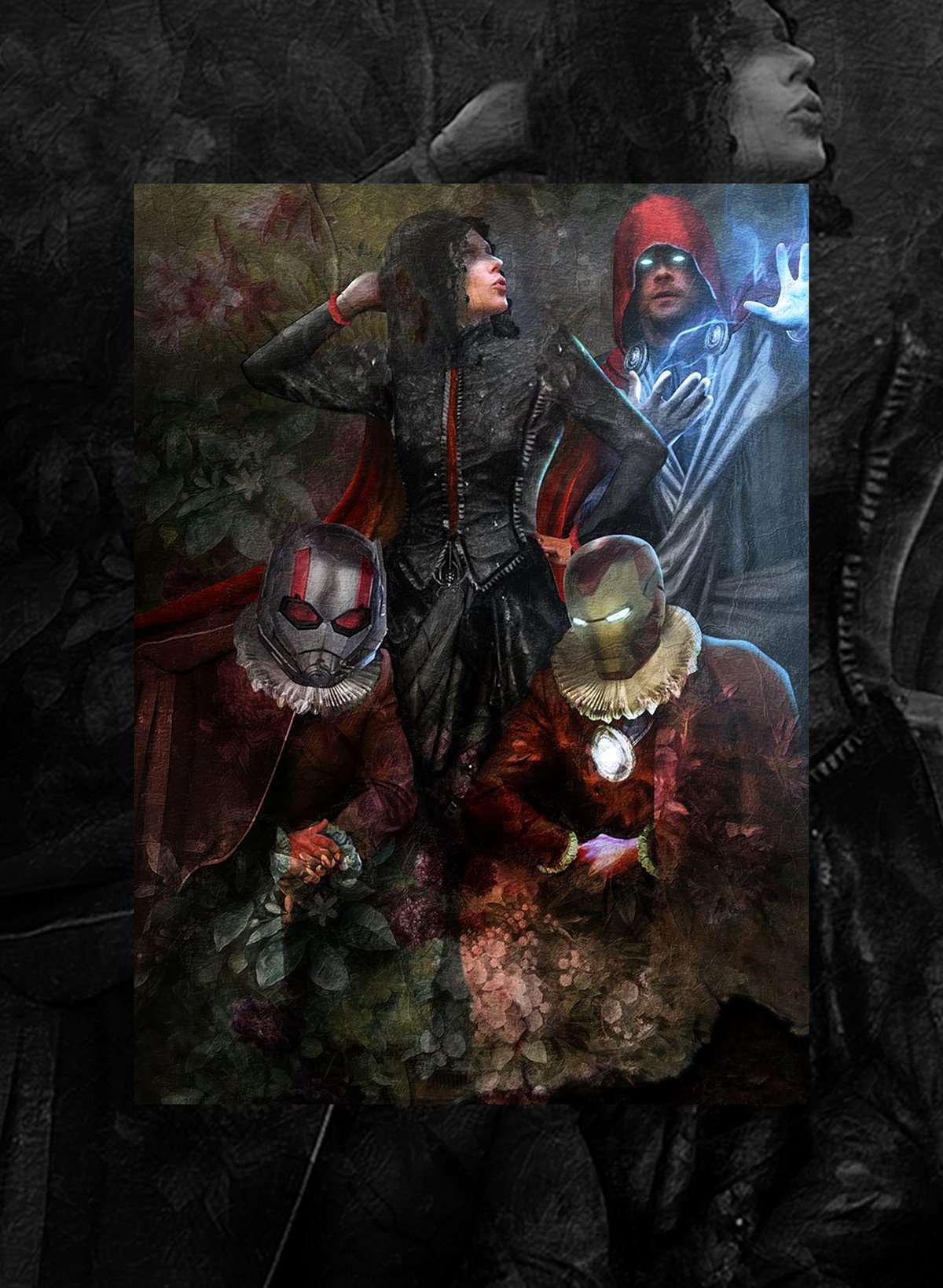 На новом постере герои «Мстителей» снова надели костюмы эпохи Ренессанса. Человек-муравей и Тони Старк получили пышные жабо — сам Старк, к тому же, запечатлен в костюме Железного человека, — а Крис Хемсворт теперь напоминает персонажа серии Assassin's Creed.