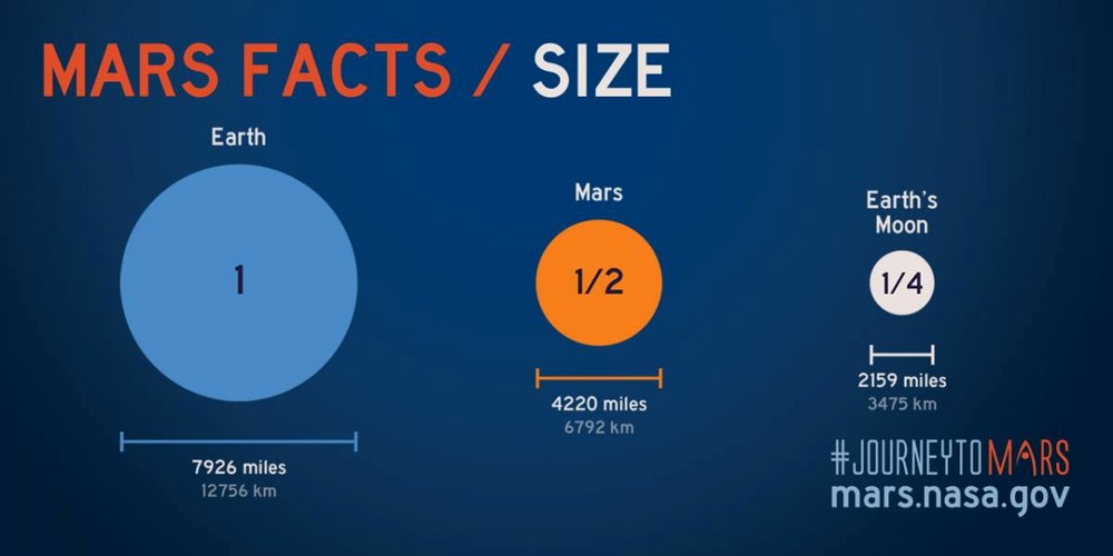 Марс почти вдвое меньше нашего голубого камешка. А площадь его поверхности примерно равна площади всей суши на Земле. Люди точны бы вместились.