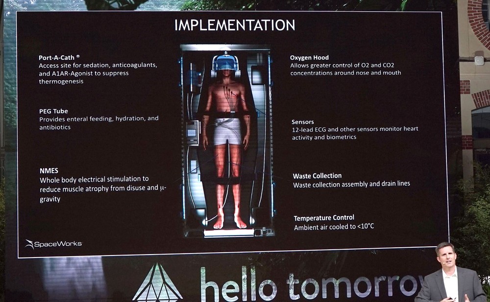 Проект Spaceworks предлагает электростимуляцию организма во время гибернации для избежания мышечной атрофии, аппарат искусственного дыхания, датчики жизненных показателей, систему отходов жизнедеятельности, компьютерно поддерживаемую температуру.