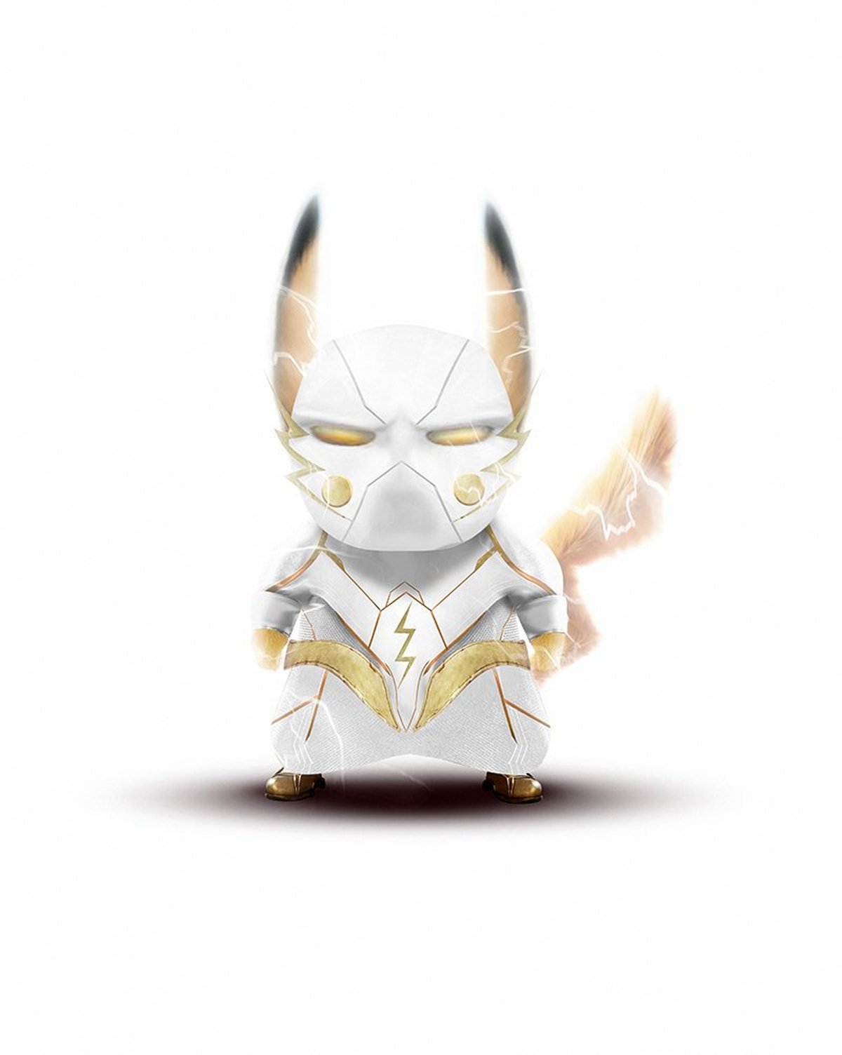 Символом покемона можно считать молнию — почти такую же, как у Флэша, одного из супергероев DC. С помощью BossLogic Пикачу примерил костюмы четырех Флэшей: обычного, обратного, черного и белого.