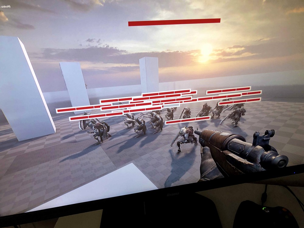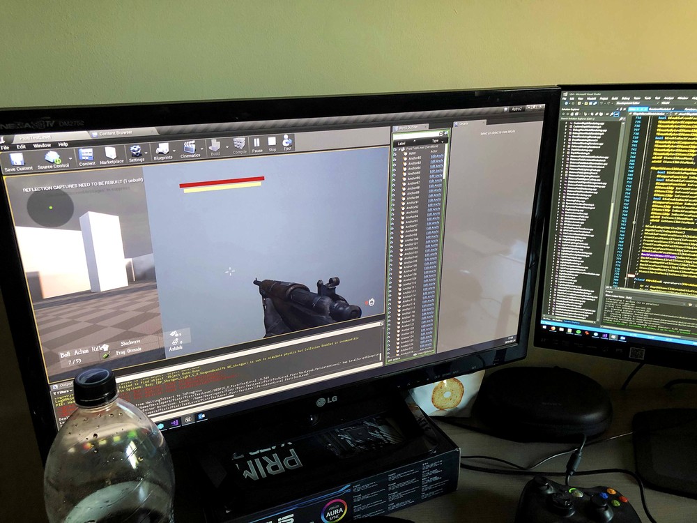 Тем временем программист Петр разбирается с оружием. Надо убедиться, что оно не проходит сквозь стены и другие объекты, рядом с которыми может стоять игрок.