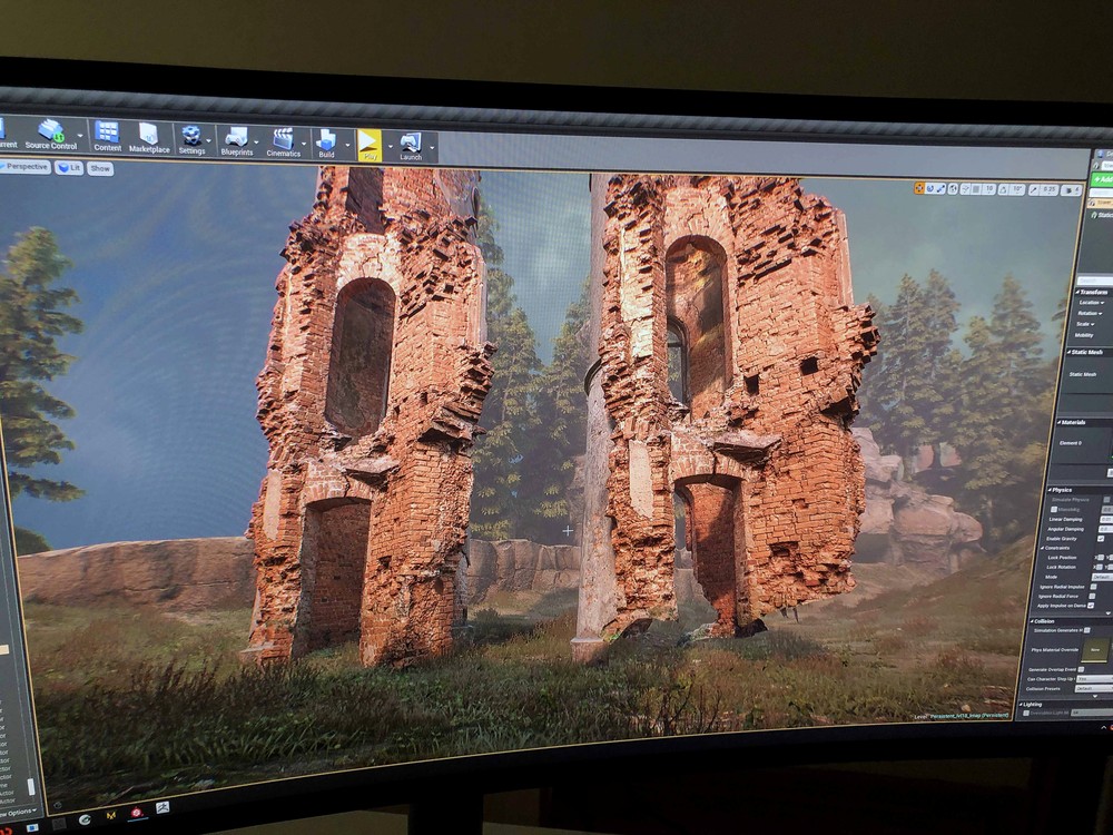 Эти руины реальны. Разработчики нашли разрушенную башню и перенесли ее в игру с помощью фотограмметрии. Башня стояла на холме, поэтому ее фрагмент дизайнеру придется воссоздать вручную.