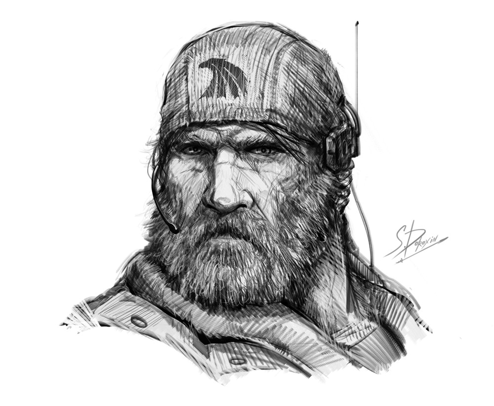 Наемник, чем-то напоминающий Маркуса Феникса из Gears of War, показан в двух вариантах: черновой набросок и более проработанная версия. Концепт сталкера сразу был нарисован во втором варианте.