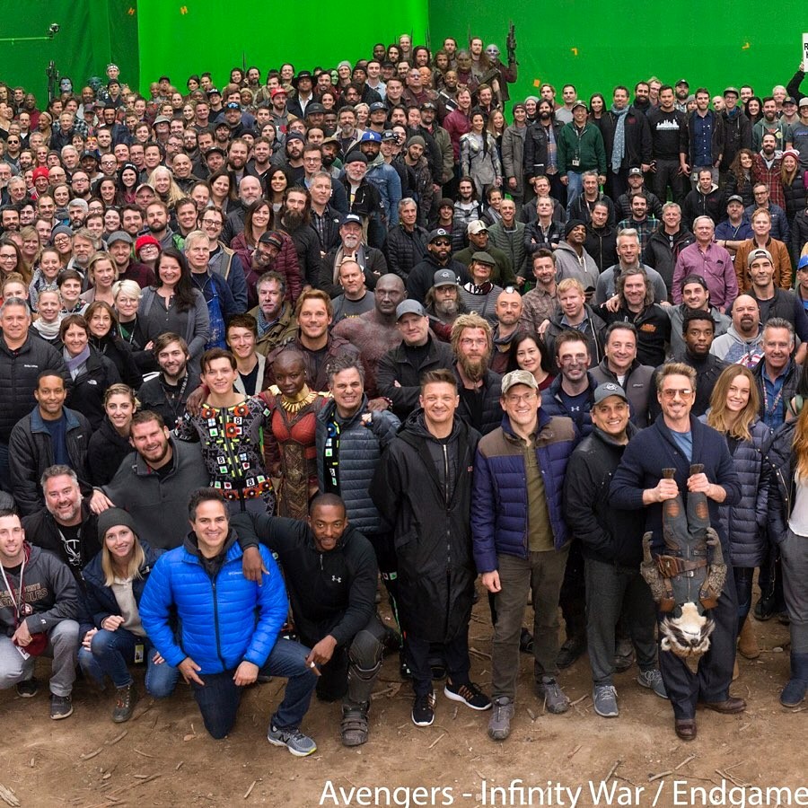 Роберт Дауни-младший опубликовал у себя в Instagram панорамное фото всех участников съемочной группы, собравшихся вместе. Разрешение у первой фотографии так себе, но с остальными можно последовать совету актера и поискать Уолли. Или хотя бы Перчатку бесконечности; кажется, их в кадре несколько.