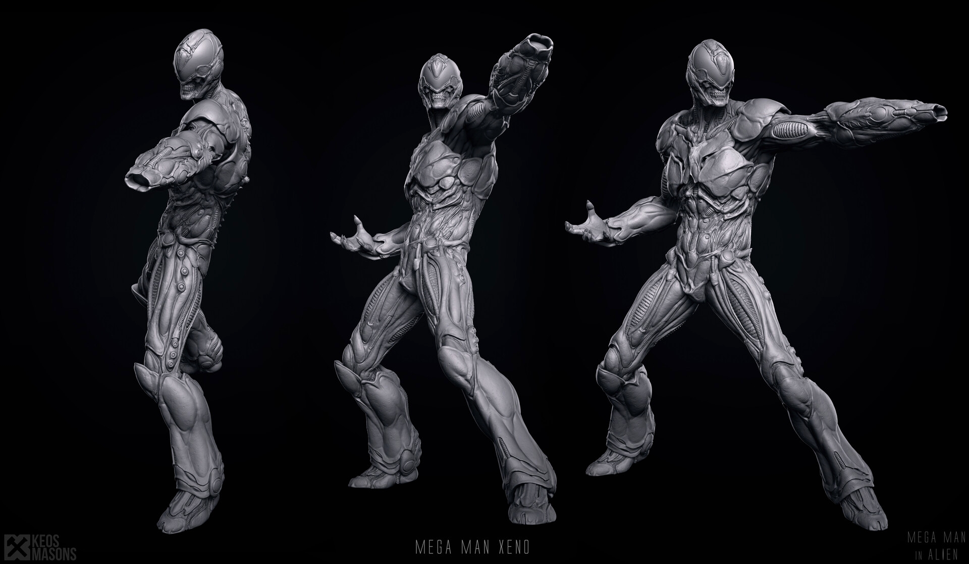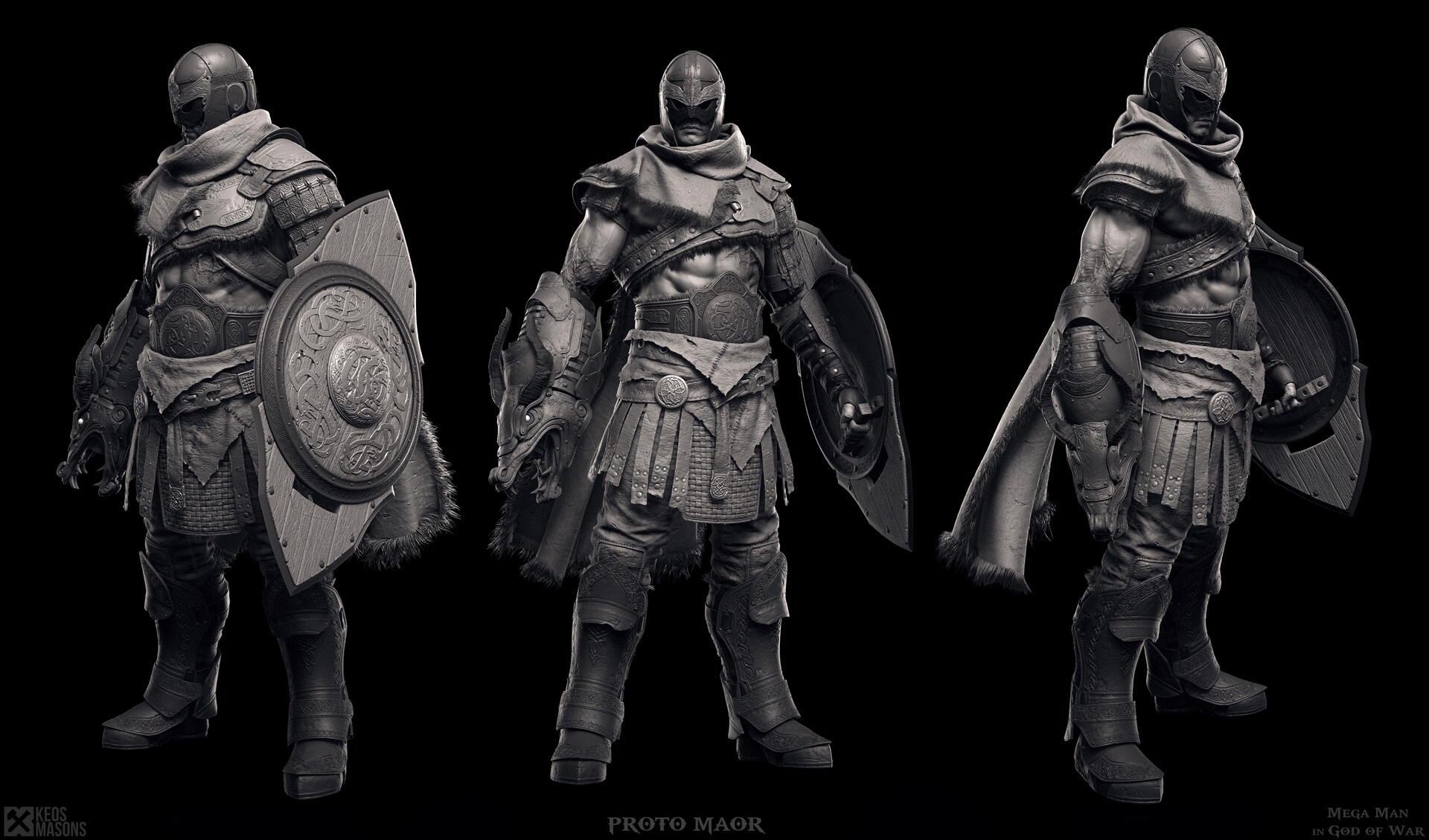 С подачи Плуффа Мегамен превратился в ксеноморфа из вселенной «Чужого», стал живым мертвецом из Dark Souls и примерил северный наряд и тяжелый щит в стиле God of War. Все модели Марко создает с нуля с помощью ZBrush, а затем дорабатывает получившиеся изображения в фотошопе.