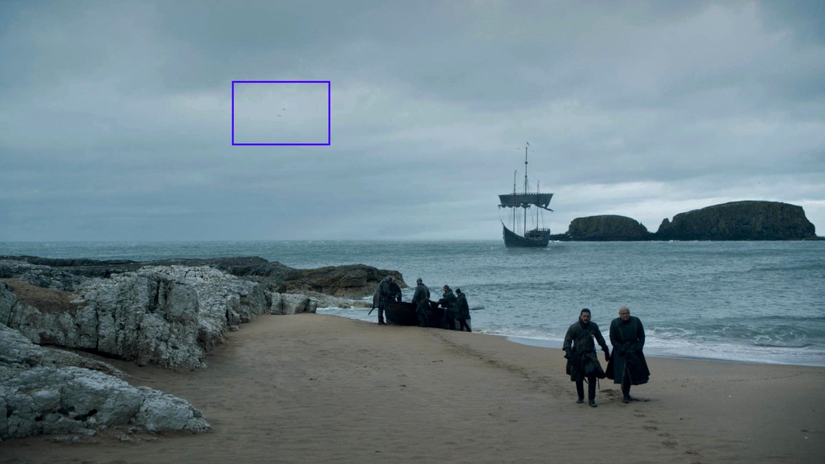 Наконец, есть один из кадров следующего эпизода, показывающий высадку Джона Сноу и Вариса на Драконий Камень, временную базу Дейенерис. В воздухе над островом фанаты заметили двух существ, летящих совсем рядом. Возможно, это просто птицы — а возможно, пара дракончиков.
