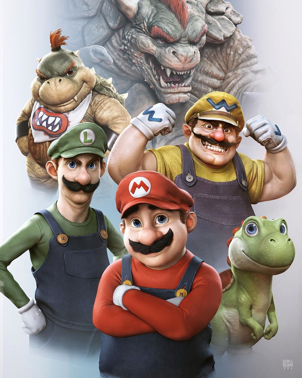 Самого Боузера и Йоши мы уже видели: они попали на общий постер с предыдущих работ Грассетти. На этот раз Раф не стал выкладывать версии персонажей без текстур; на самом деле это не рисунки, а очень проработанные модели.