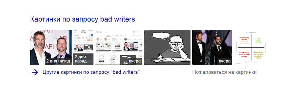 Предполагается, что за ассоциацией запроса bad writers с фотографией шоураннеров «Игры престолов» стоит фанатский сабреддит freefolk, посвященный сериалу. Google придает большое значение популярным постам с Reddit и может поднимать в топ ответов на запрос посты и фотографии из них.