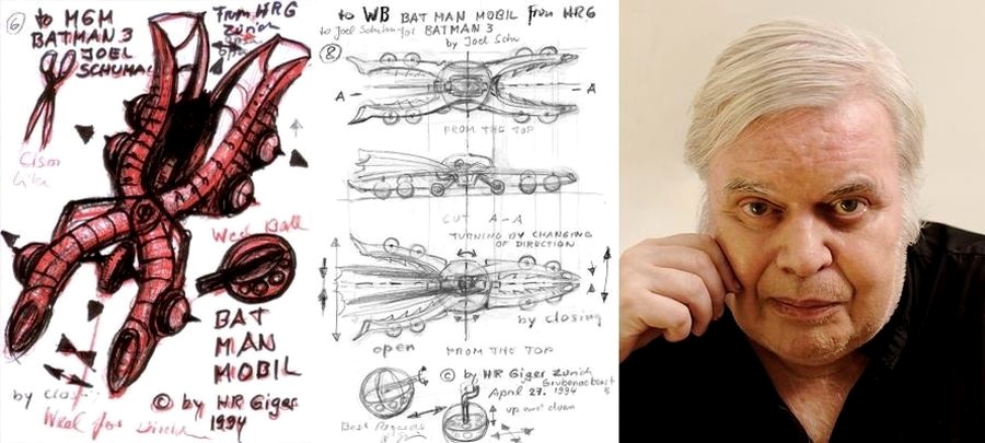 Бэтмобиль в «Бэтмене навсегда» Джоэла Шумахера мог выглядеть иначе. Создать концепцию бэтмобиля предлагали художнику Хансу Гигеру, известному работой над вселенной «Чужого» — в частности, именно Гигер создал образ ксеноморфа.
