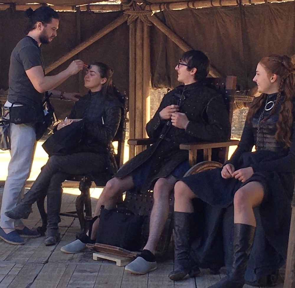 Заодно выяснилось, как развлекаются актеры, не задействованные в съемках сцен. Кит Харингтон, кажется, решил подрабатывать гримером.