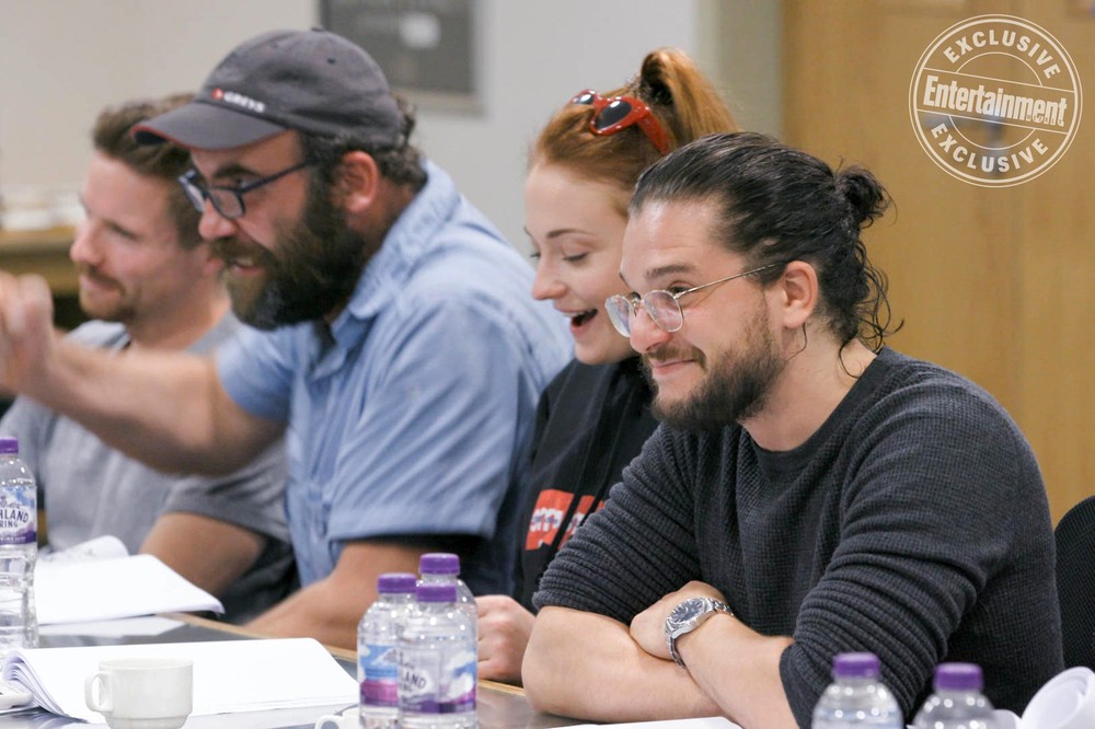 Здесь можно увидеть Кита Харингтона во время коллективного чтения сценария сезона, посмотреть на четверку Старков, позирующих в богороще, увидеть Джона Сноу и Дейенерис Таргариен вместе с шоураннерами сериала, Дэвидом Бениоффом и Дэном Уайссом.