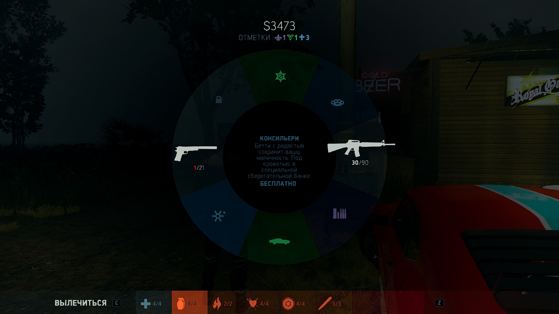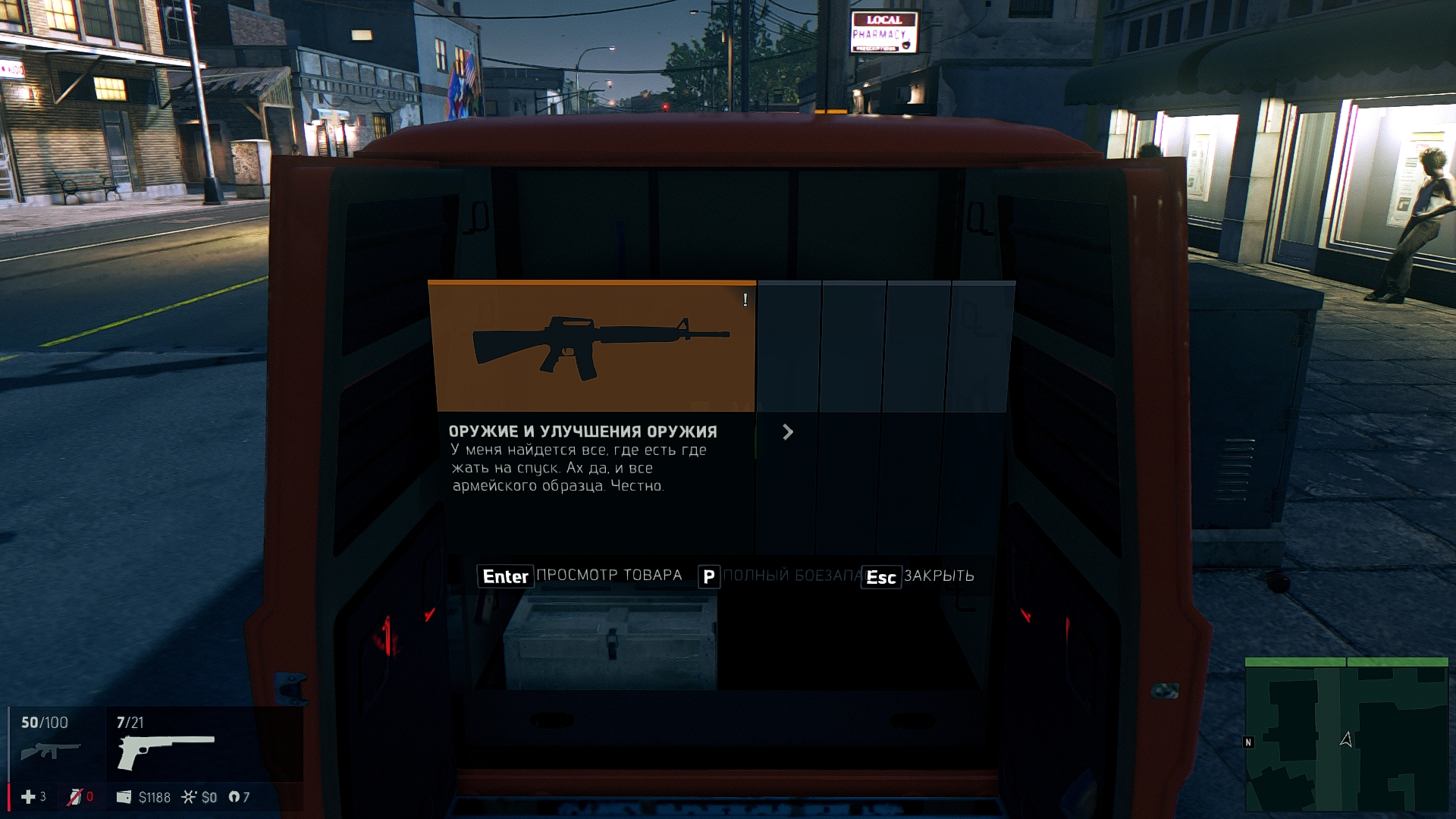 (5) Деньги и прокачка. Одна из немногих игр, где деньги нужны всегда. За них вы прокачиваете автомобили, покупаете оружие, аптечки и всё в этом духе. Не знаю, как у других, но у меня не было такого, чтоб я скупил сразу всё и радовался, нет, тут приходилось выбирать и ставить приоритеты, что нужнее. За мани вы покупаете разного вида пушки, вкачиваете точность, вместимость магазина и тому подобное, при учете большой цены.