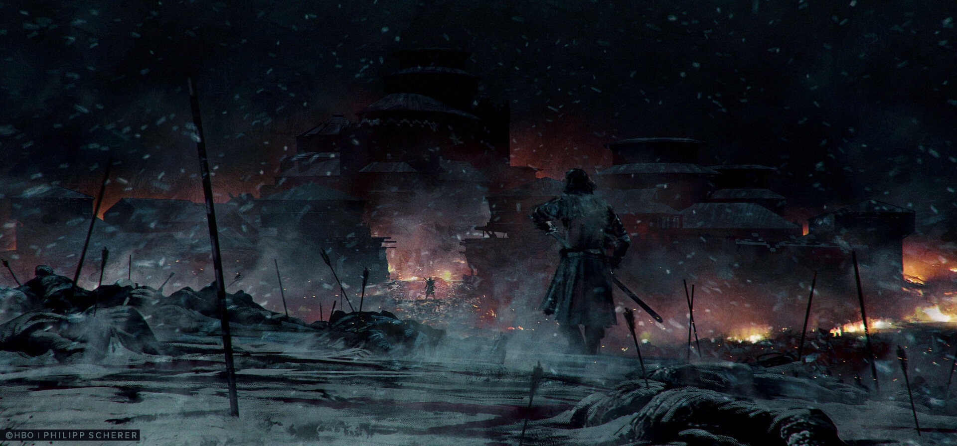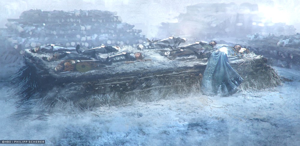 Художники, работавшие над финальным сезоном «Игры престолов», начали публиковать концепт-арты, созданные во время проработки ключевых сцен эпизодов. Пока свои работы опубликовали Филипп Шерер и Киран Белшоу.