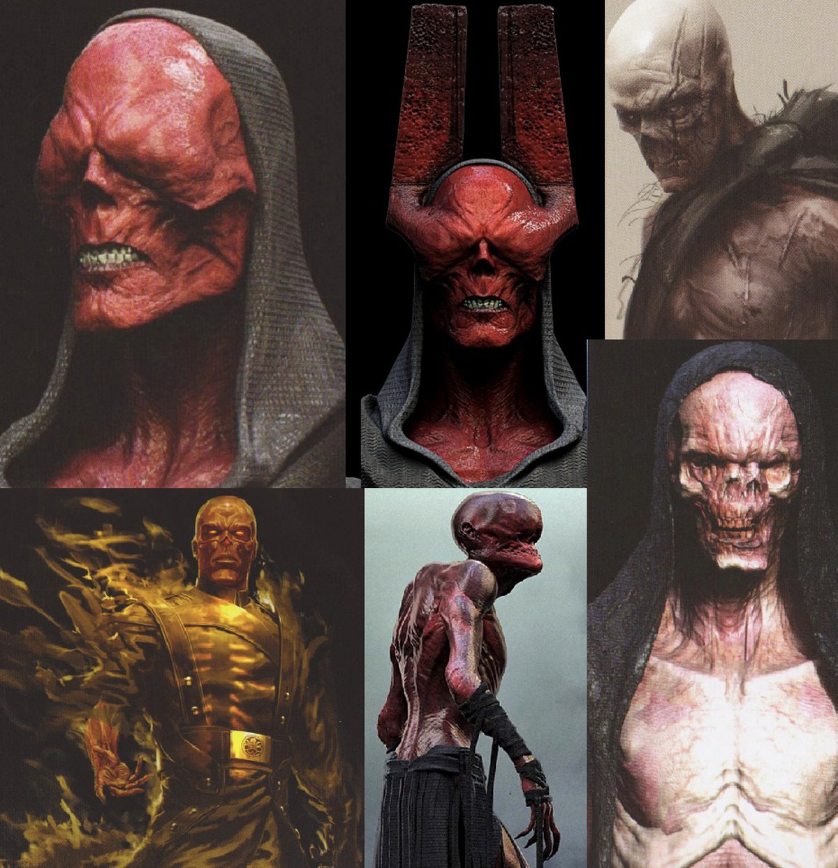 Художники предложили несколько вариантов: от персонажа в разлагающейся броне, напоминающего оригинального Красного Черепа, до существ в духе фильмов Гильермо дель Торо — без глаз и с костяными наростами в форме своеобразных рогов.