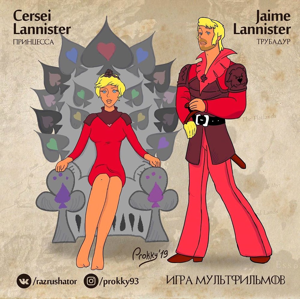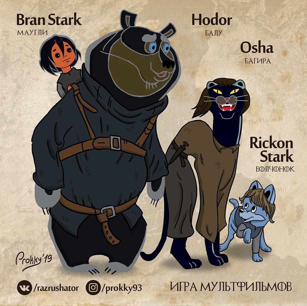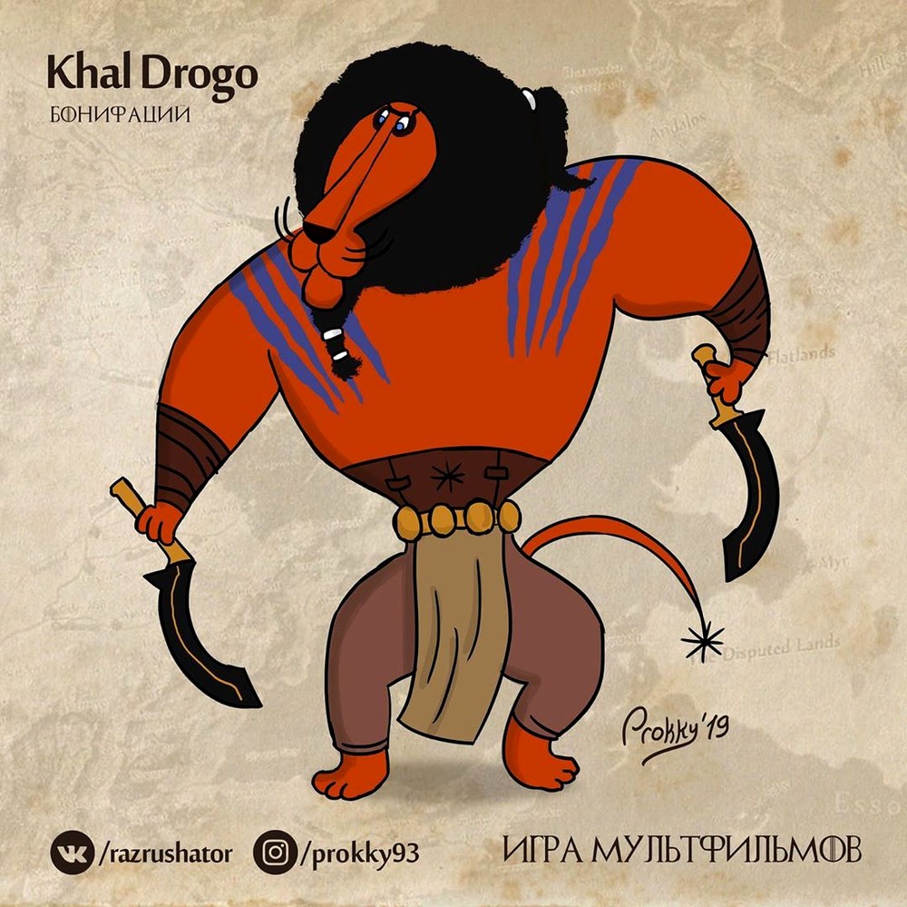 Принцесса и трубадур из «Бременских музыкантов» стали Серсеей и Джейме Ланнистерами, Бармалей превратился в Эурона Грейджой, а милый лев Бонифаций очень удачно трансформировался в сурового кхала Дрого.