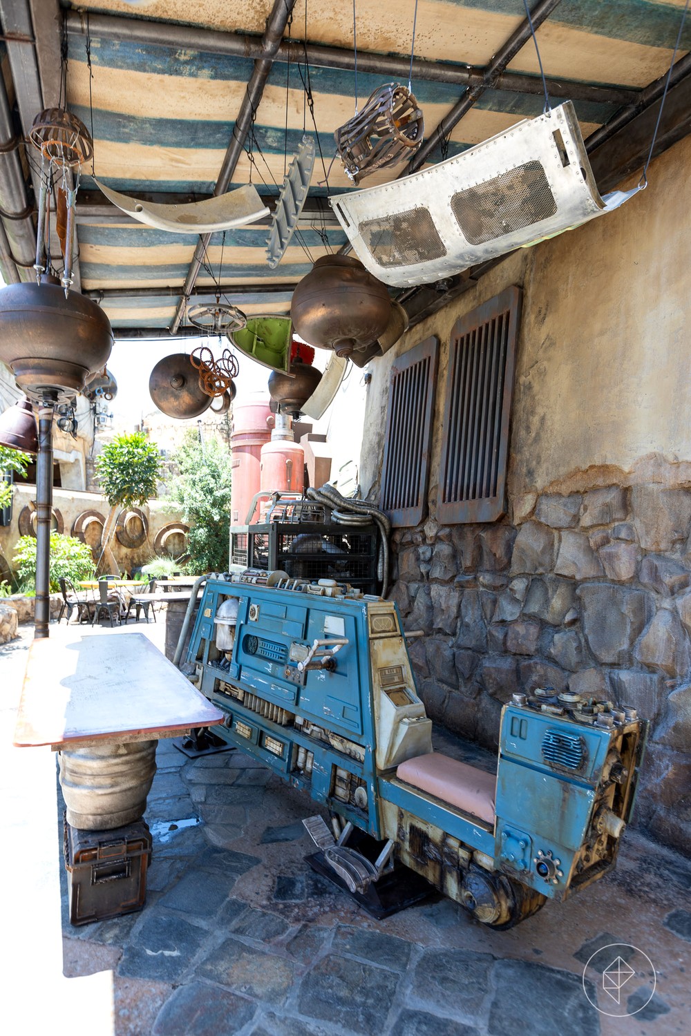 Парк развлечений воспроизводит аванпост на планете Батуу. Некогда здесь процветала торговля, но теперь аванпост пришел в упадок. По словам создателей парка, он наполнен множеством отсылок к оригинальной трилогии, новым фильмам, сериалам, спин-оффам — а возможно, и тому, что ждет вселенную в будущем.