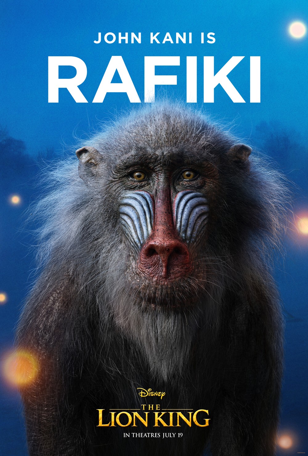 Walt Disney Studios выпустила персональные постеры актеров нового «Короля Льва». Лиц самих исполнителей здесь нет: их заменили морды персонажей-животных, нарисованные с помощью компьютерной графики.