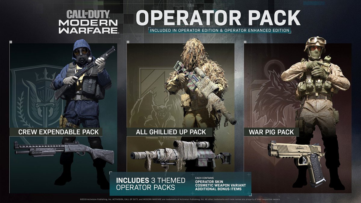 Пока раскрыты личности трех операторов, входящих в состав специальных изданий Operator Edition и Operator Enhanced Edition. Это снайпер Гринч, штурмовик Оттер и морпех Уайатт, появлявшиеся в оригинальной Call of Duty 4: Modern Warfare.