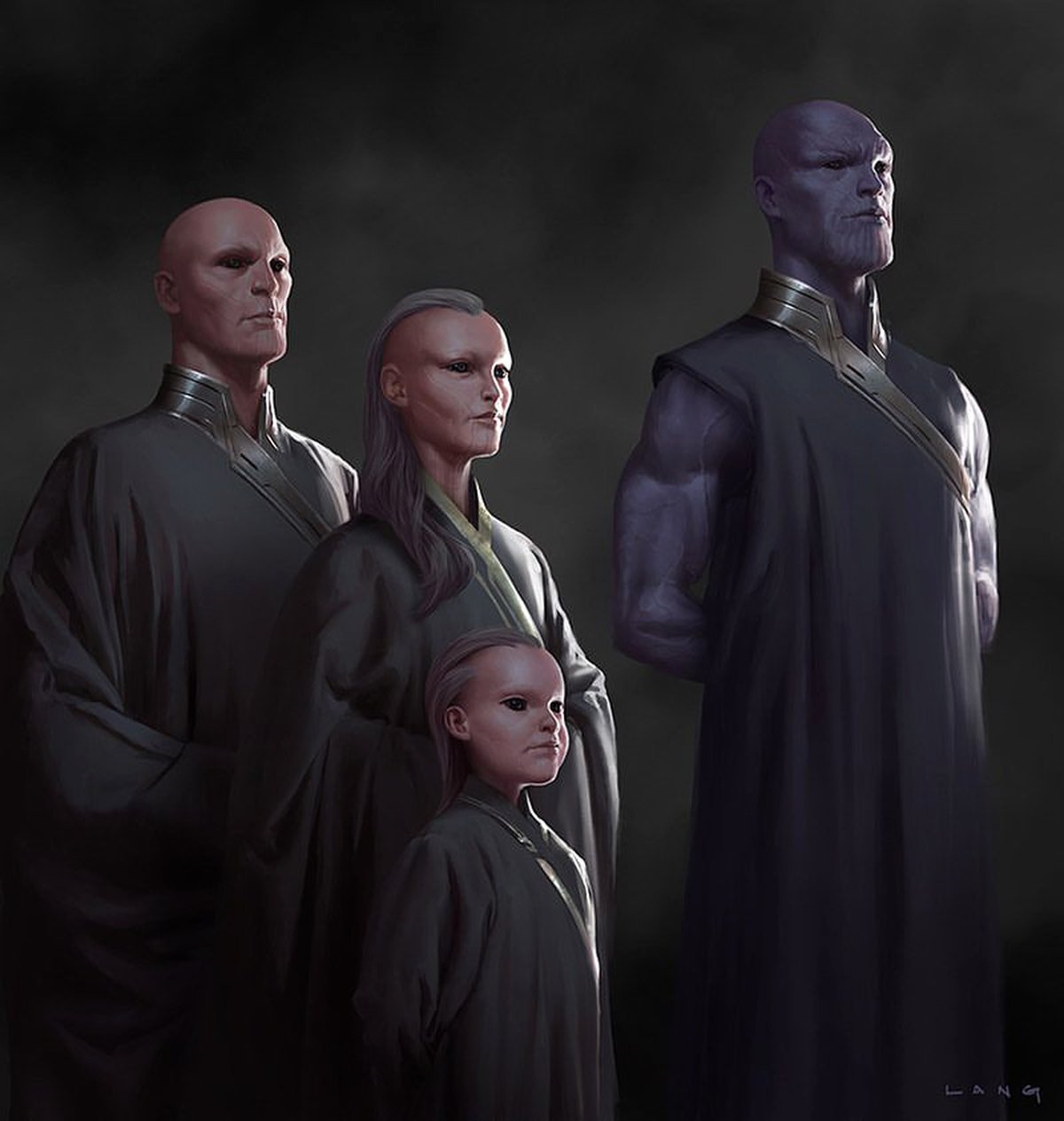 Семейный портрет Таноса (на самом деле нет). Меня попросили показать, как могли бы выглядеть Вечные рядом с молодым Таносом. Думаю, это мог быть флэшбек — вот и все, что я знаю.