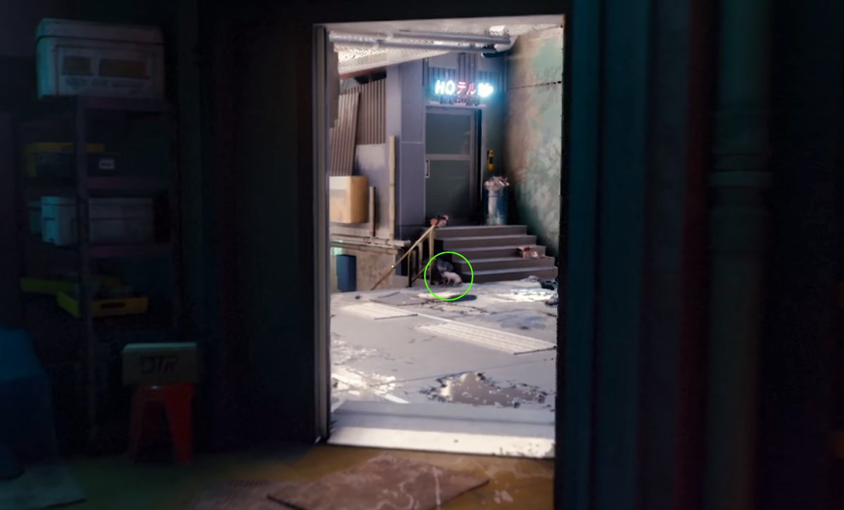 Внимательно смотрели первый геймплей Cyberpunk 2077? Если да, то вы наверняка заметили маленькую кошку, ошивавшуюся неподалеку от входа в мастерскую риппердока Виктора. Вот она, мирно ест что-то из миски прямо у ступенек в подвал.
