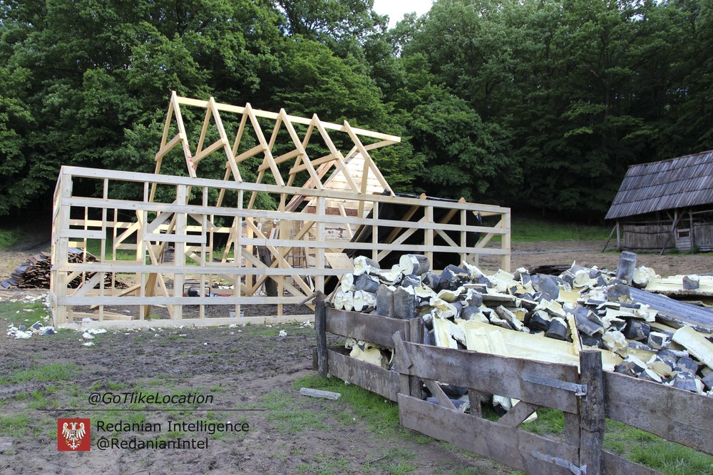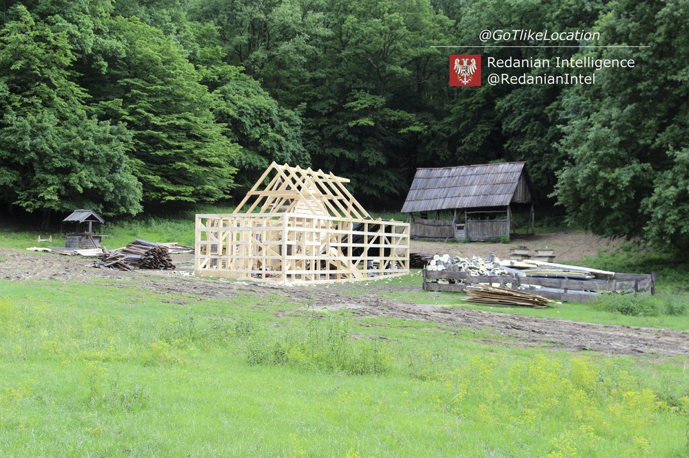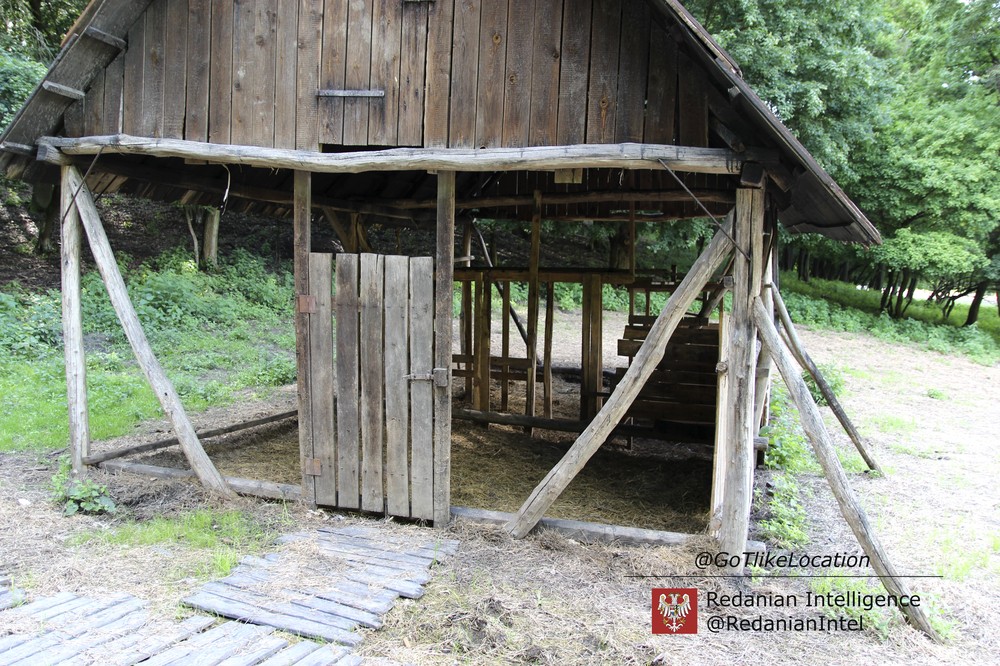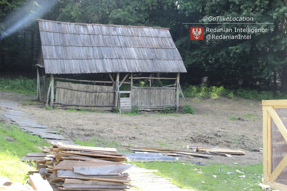 Вторая съемочная площадка, расположенная на одной из опушек местного леса, напоминает ферму. Декораторы «Ведьмака» построили основной дом и возвели небольшой навес — вероятно, для лошадей.