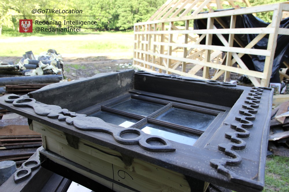 Основное здание, видимо, выглядело как бревенчатый сруб. На самом деле у него деревянный каркас, а бревна сделаны из искусственных материалов — похоже на что-то вроде гипсокартона. Стыки между ними просто запенили и покрасили.