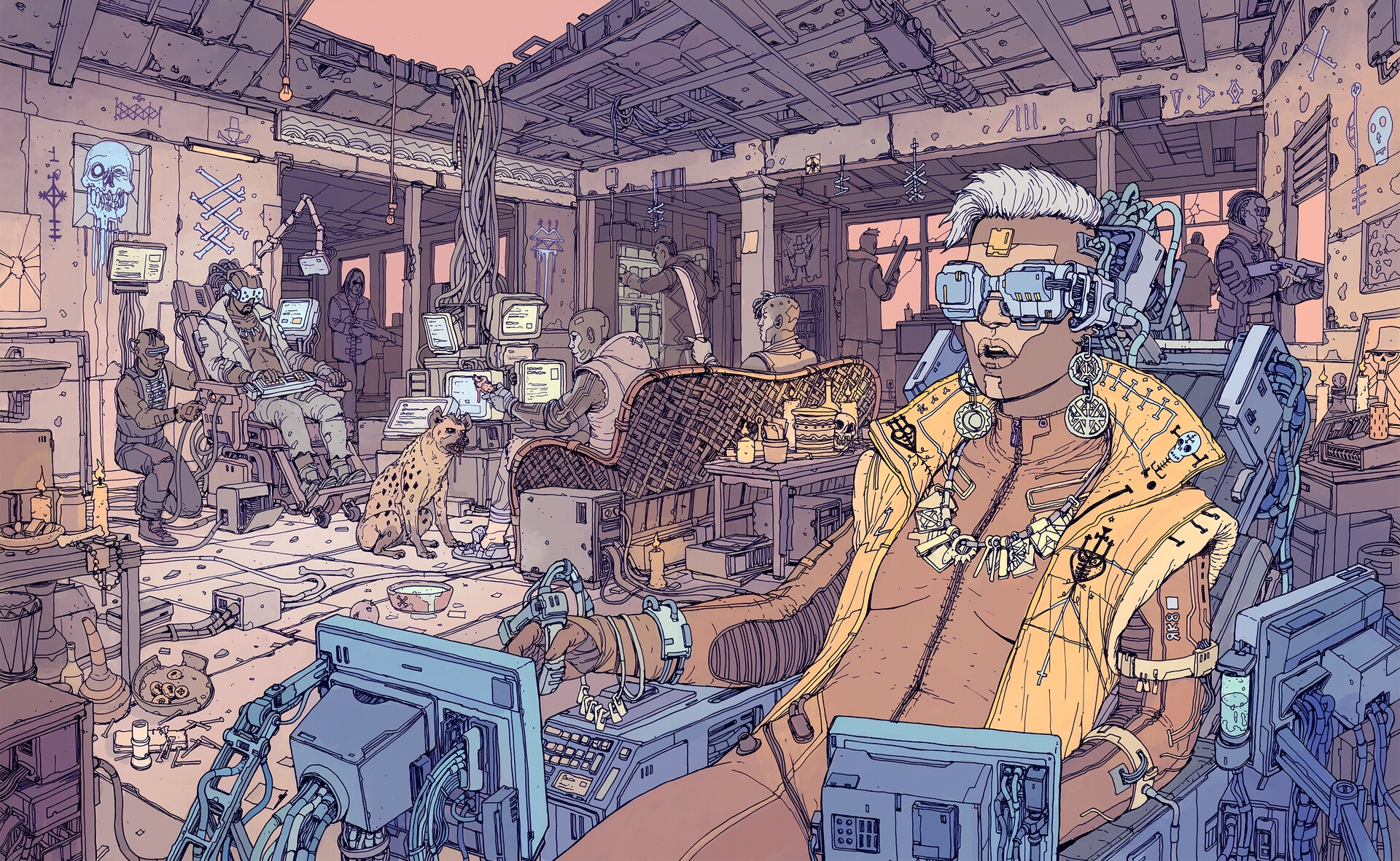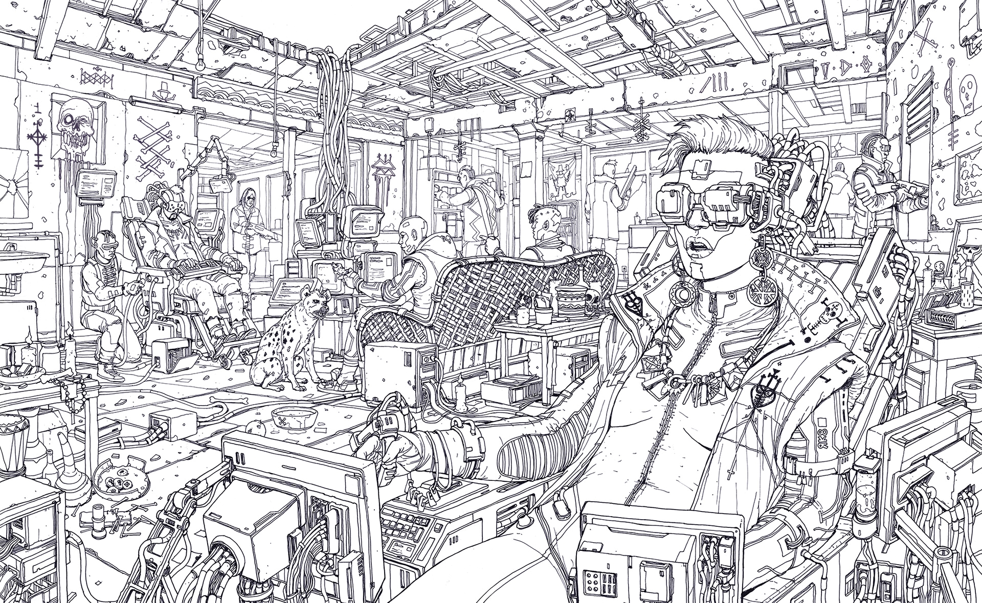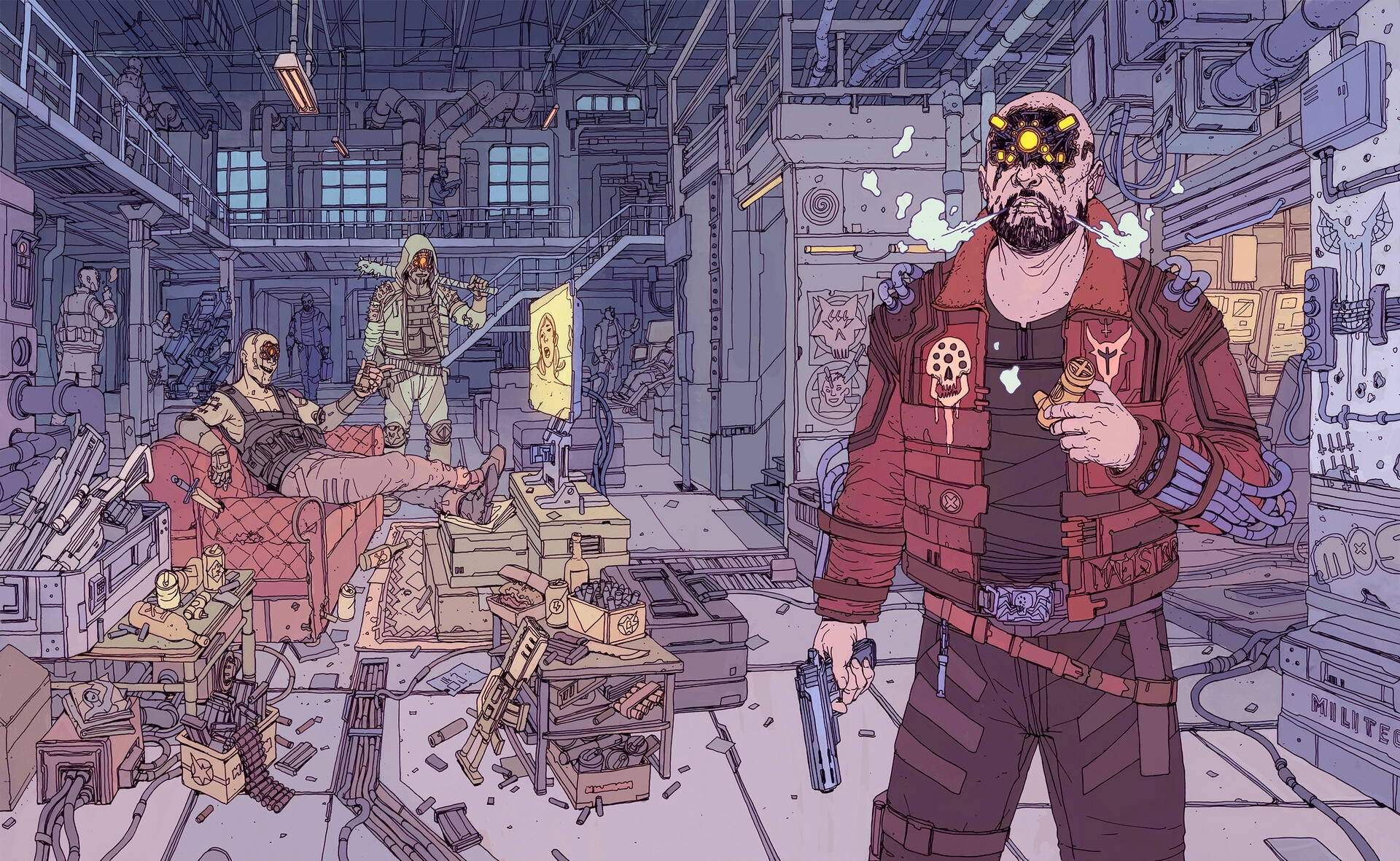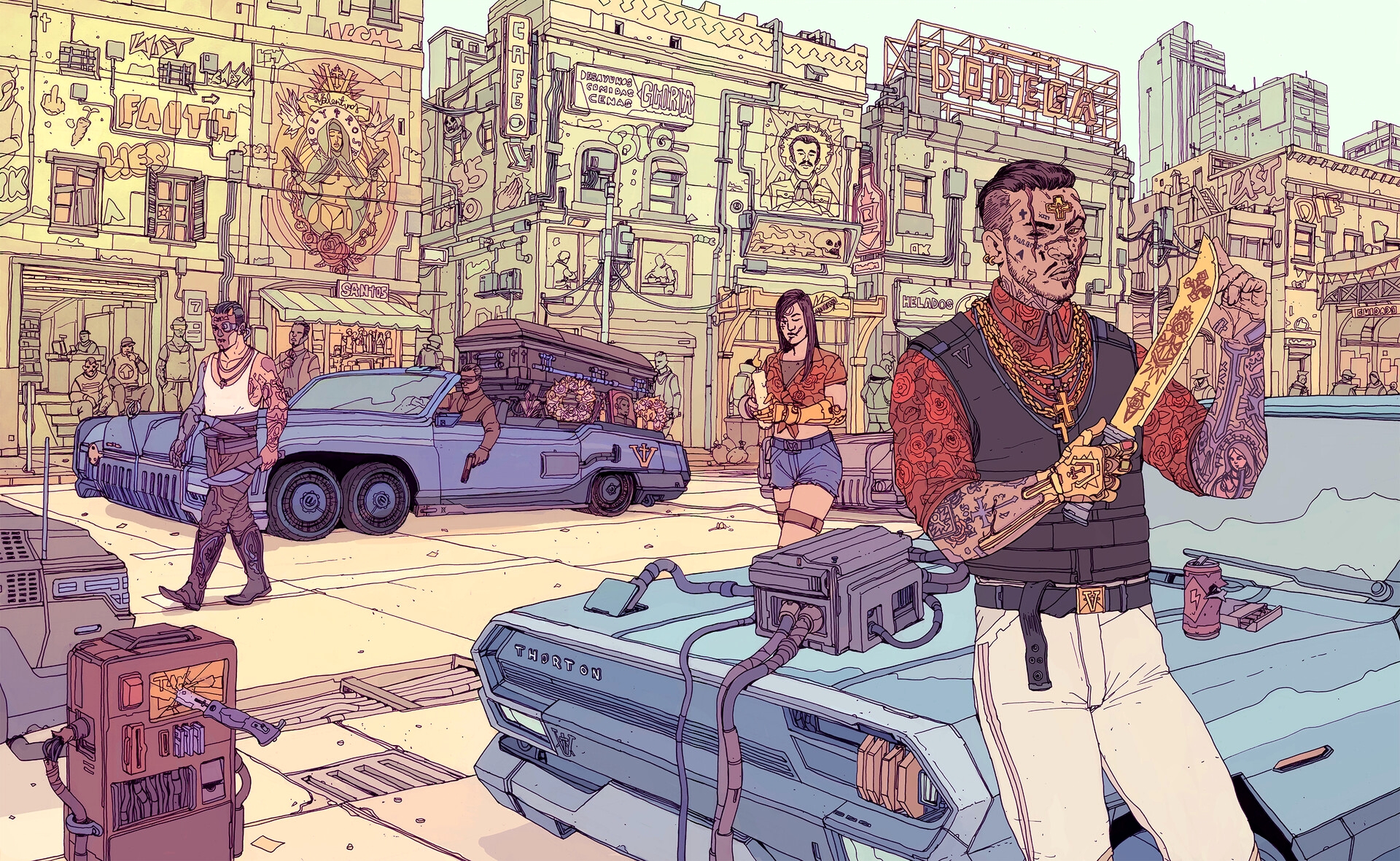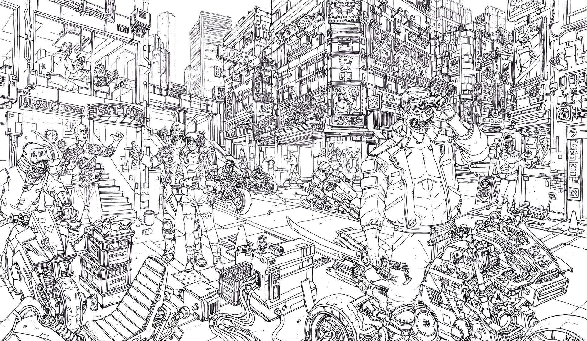 На прошлой неделе мы показывали фрагменты работ испанского художника Death Burger, украшающие стилбук коллекционного издания Cyberpunk 2077 — он изобразил сцены из жизни четырех банд Найт-Сити. Теперь Death Burger выложил полноразмерные версии этих артов — как раз на рабочий стол.