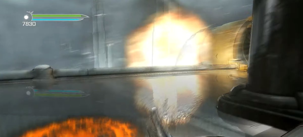 Например, на скриншоте ниже можно увидеть отражение одного из элементов интерфейса. Видимо, в Star Wars The Force Unleashed 2 он реализован в виде трехмерного объекта, а не отрисовывается в отдельном буфере уже после рендеринга сцены.