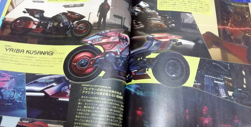 На одном из разворотов журнала можно увидеть как уже знакомые скриншоты игры, так и совершенно новые кадры; в частности, здесь показан красный байк Yaiba Kusanagi. Именно на этом байке главный герой ездил во время демонстрации игры.