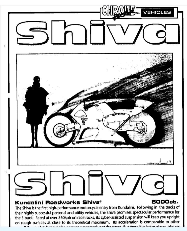Интересно, что дизайн Yaiba Kusanagi напоминает байки из рулбука настольной версии Cyberpunk. Например, вот так выглядел байк Kundalini Roadworks Shiva.