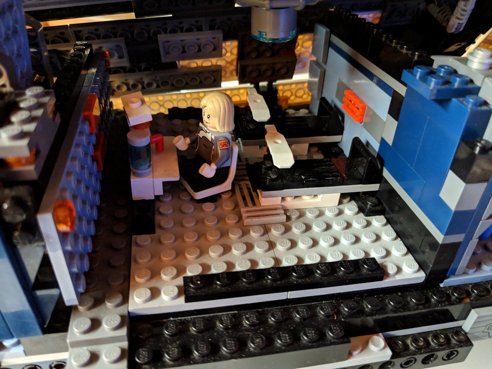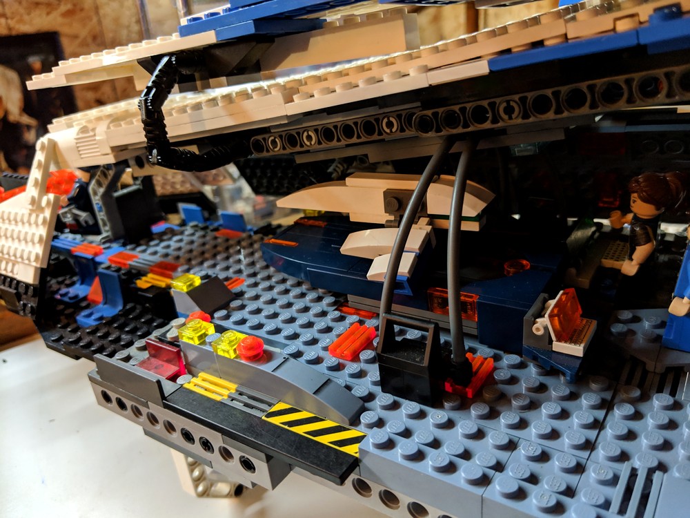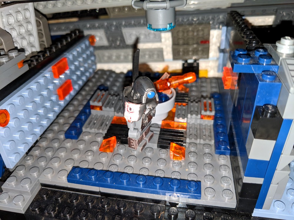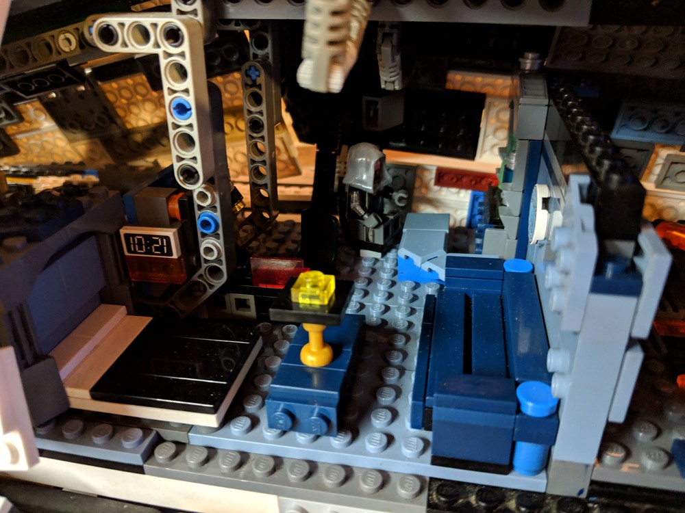LEGO-версия «Нормандии» сделана из нескольких тысяч блоков. Это не просто корпус: фрагменты обшивки снимаются, внутри — знакомые персонажи и интерьеры. На фотографиях, выложенных SonOfRevvan, можно увидеть Джокера, Гарруса, Легиона, медицинский отсек, мостик и еще несколько кают корабля.