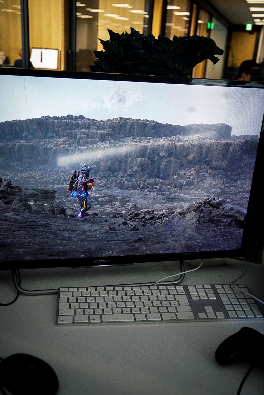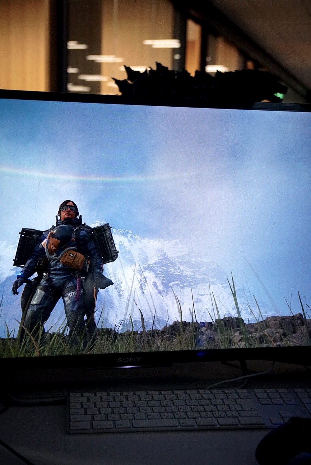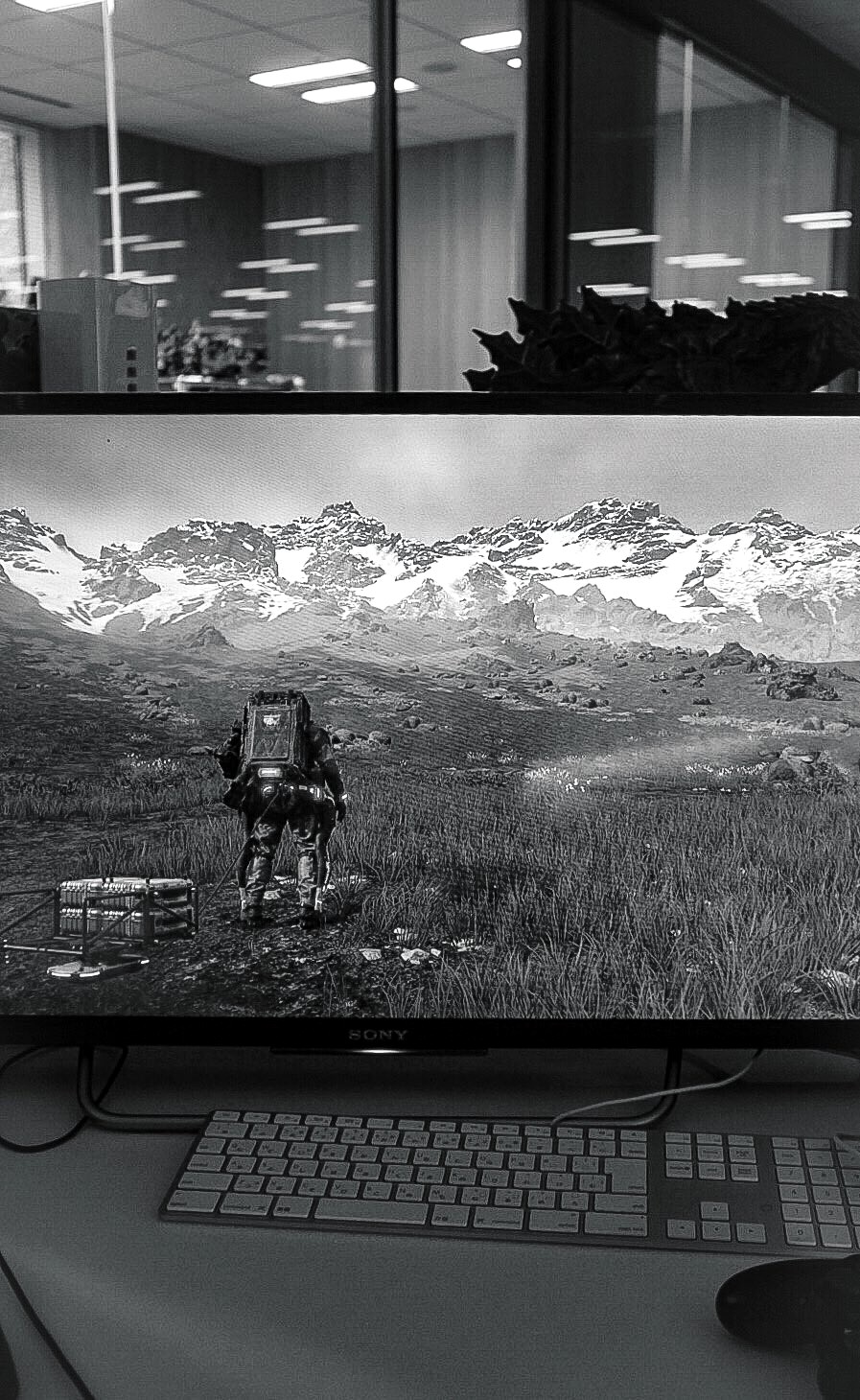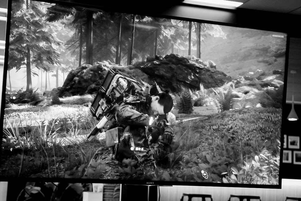 Хидео Кодзима продолжает публиковать кадры из Death Stranding. Разработчик по-прежнему обходится без комментариев: он просто выкладывает фотографии своего монитора, либо обесцветив их, либо оставив все как есть.