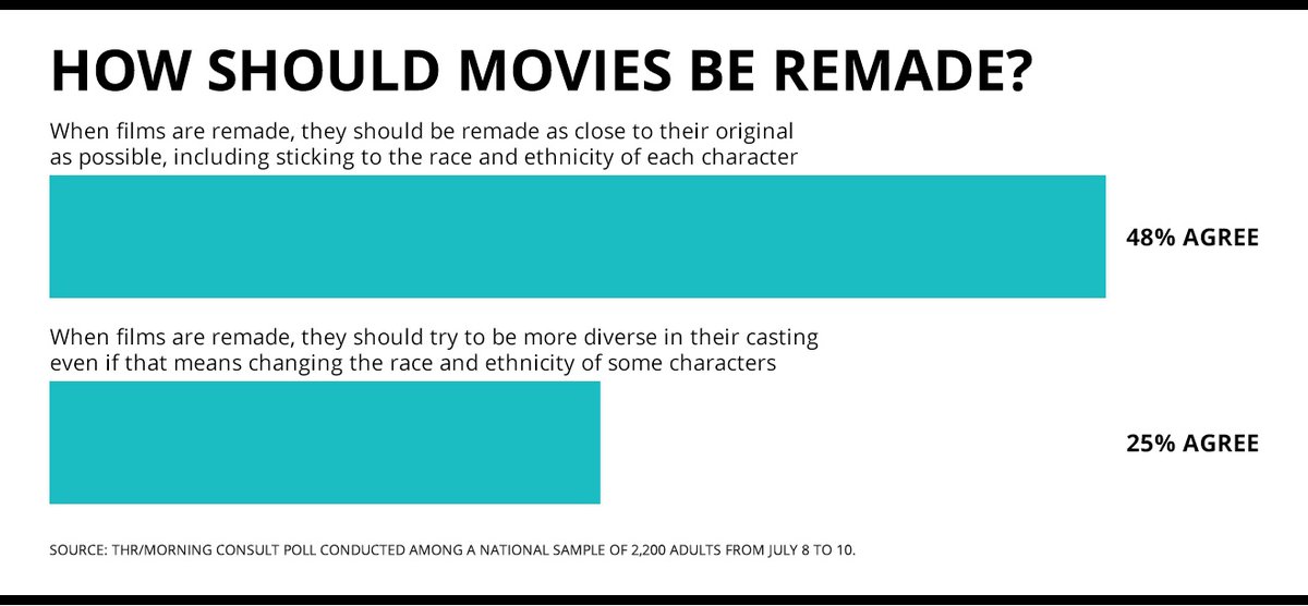 25% опрошенных считают, что при создании ремейка допустимо сделать кастинг более расово разнообразным, даже если это означает изменение расы некоторых персонажей.