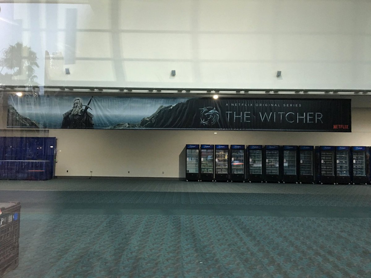 Сейчас Netflix активно готовится к презентации сериала. Выставочные залы Comic-Con пока закрыты для публики, но кое-что можно увидеть просто сквозь стекло. Например, гигантский баннер «Ведьмака» с ключевым артом и логотипом сериала.