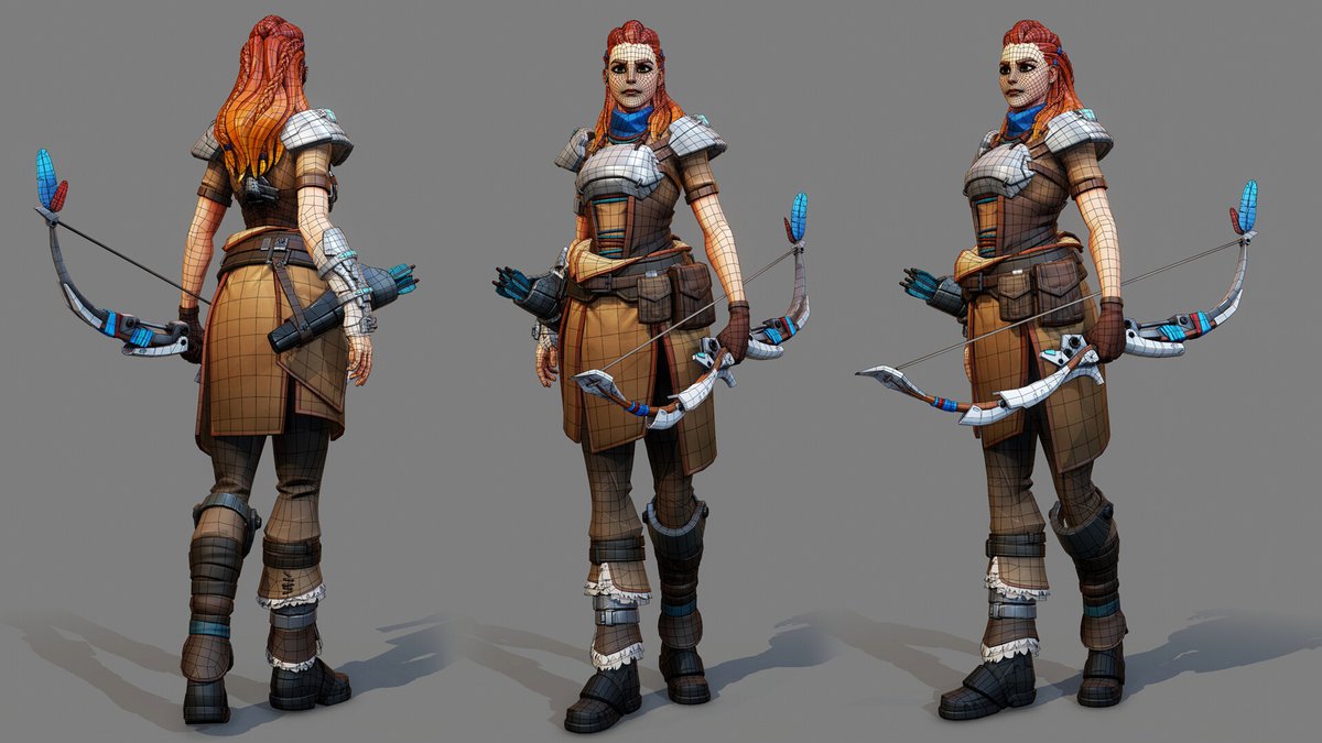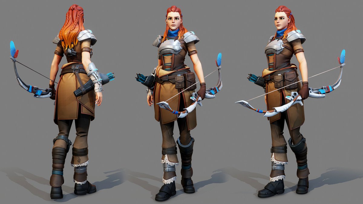 Гуэрос пишет, что постарался совместить дух оригинального дизайна Horizon Zero Dawn с визуальным стилем Overwatch. По словам художника, особенно непросто было подобрать подходящую цветовую палитру.