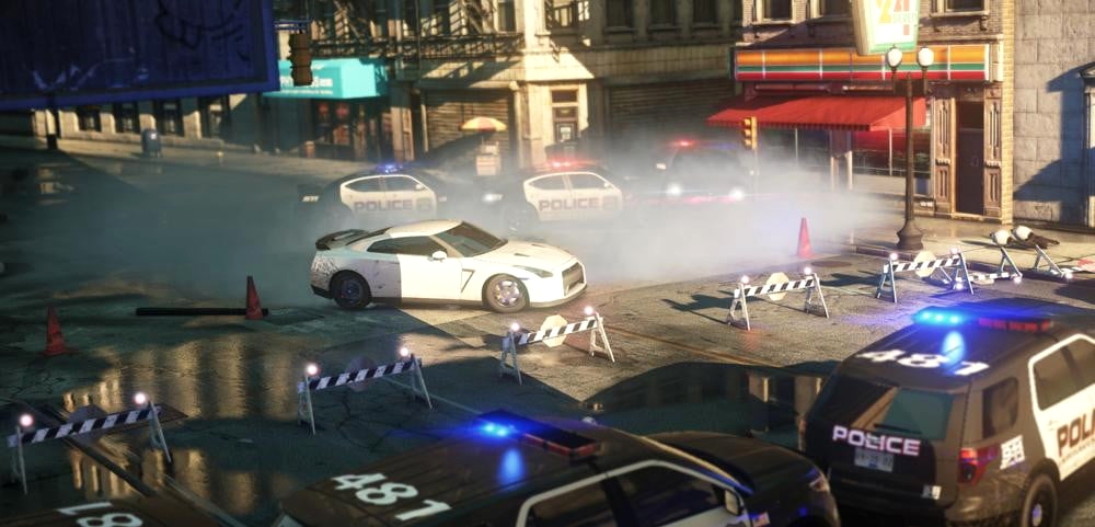 Тем не менее данную фишку вырезали и я даже догадываюсь почему: Посудите сами, подобная идея звучит просто замечательно, когда вы уезжаете от полиции, или едете первом месте в гонке, но вот вы уже второй, или даже третий и внезапно оказывается, что такие девайсы значительно усложняют жизнь всем, кроме первого гонщика, сводя на нет любые попытки обойти лидера соревнования. А при мыслях о том, через что проходили бы игроки на последних местах остаётся только хвататься за сердце.