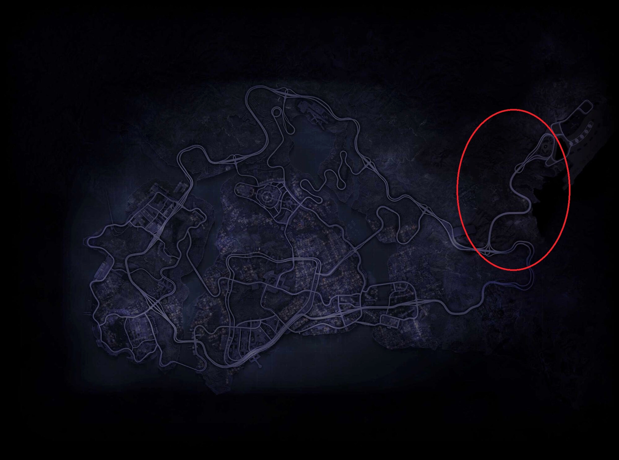 Она была больше. Гораздо больше. Есть вот определённый пласт людей, которые ищут видео из презентационных билдов, затем находят то же самое место в финальной версии, и начинают тыкать, что, мол, вот тут и тут стоял небоскрёб, а там пролегала ещё одна дорога, однако проведение подобных сравнений, да ещё и с моей внимательностью, заняло бы недели, а то и месяцы, и это я уже не говорю о количестве билдов игры, которые мне пришлось бы сравнивать. Так что, простите, но я вам просто представлю фрагменты глобальной карты билда с E3 и ограничусь тем, что, во-первых, изначально для игры планировали ввести довольно обширную местность вне города: