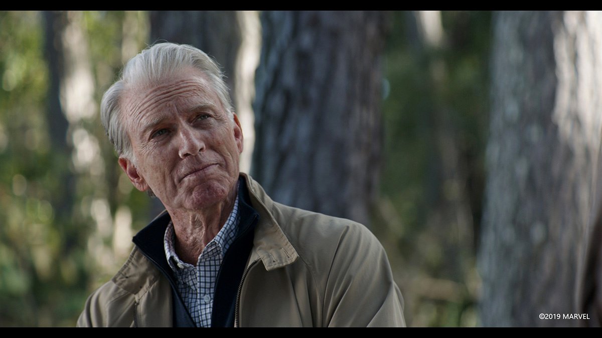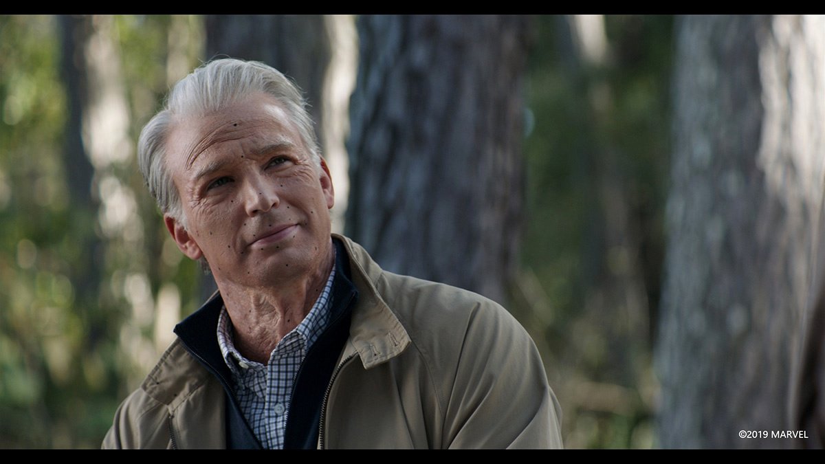 В конце новых «Мстителей» старый Капитан Америка, проживший человеческую жизнь с Пегги Картер, передает свой Щит бывшему Соколу. Постаревшего Стива Роджерса по-прежнему играет Крис Эванс — ему добавили несколько десятков лет специалисты по спецэффектам из студии Lola VFX.