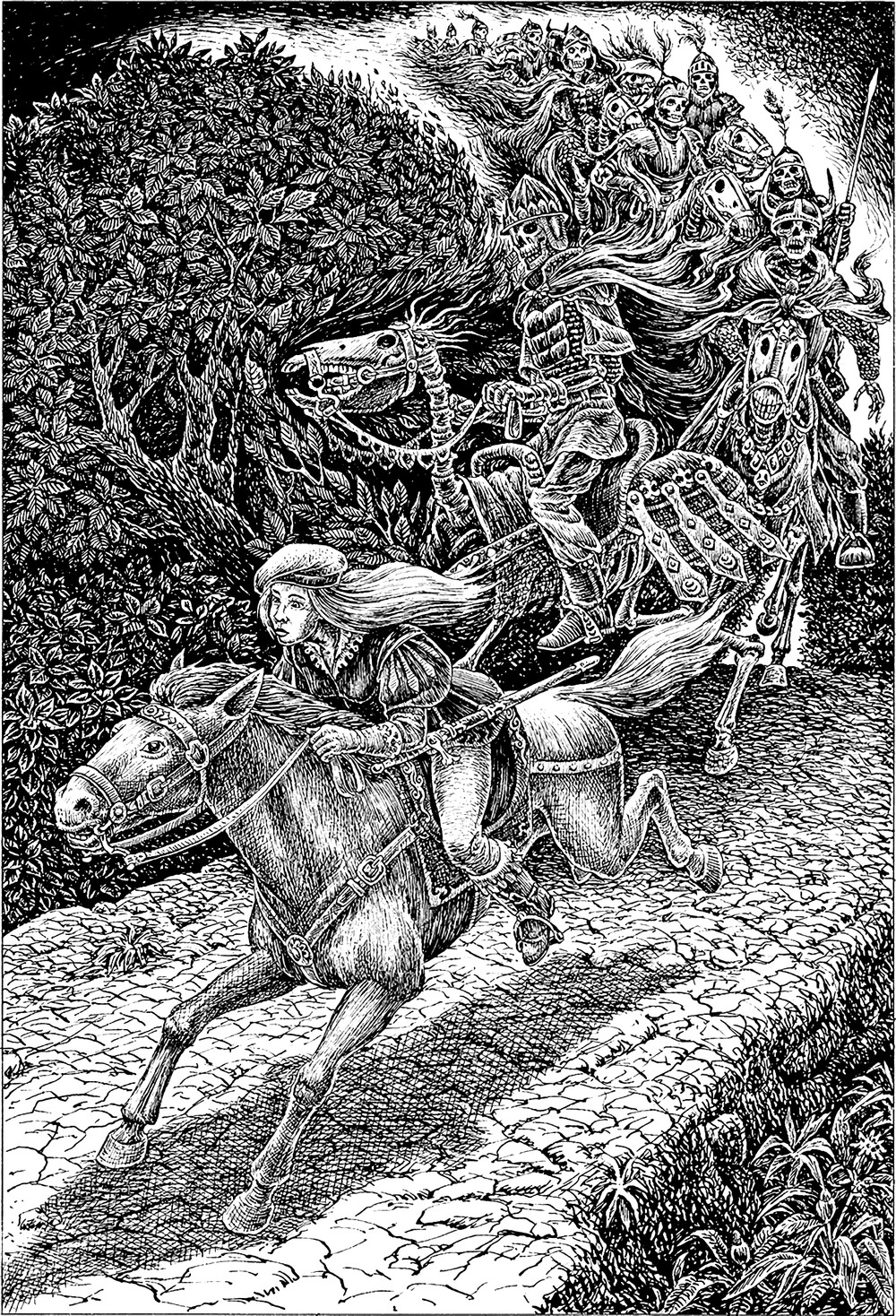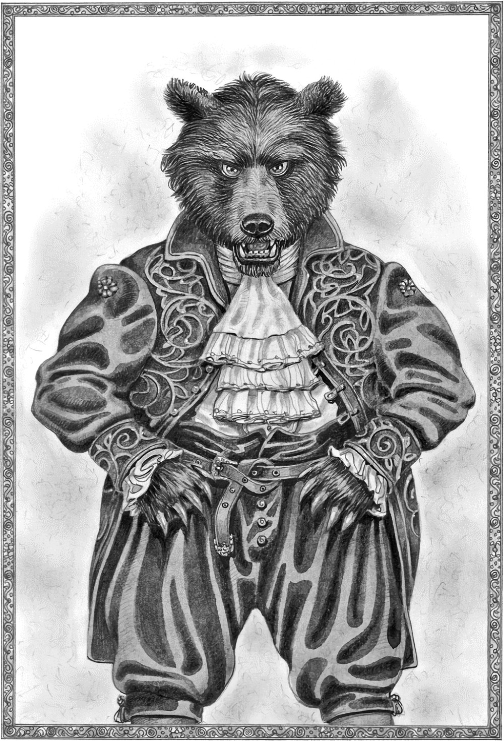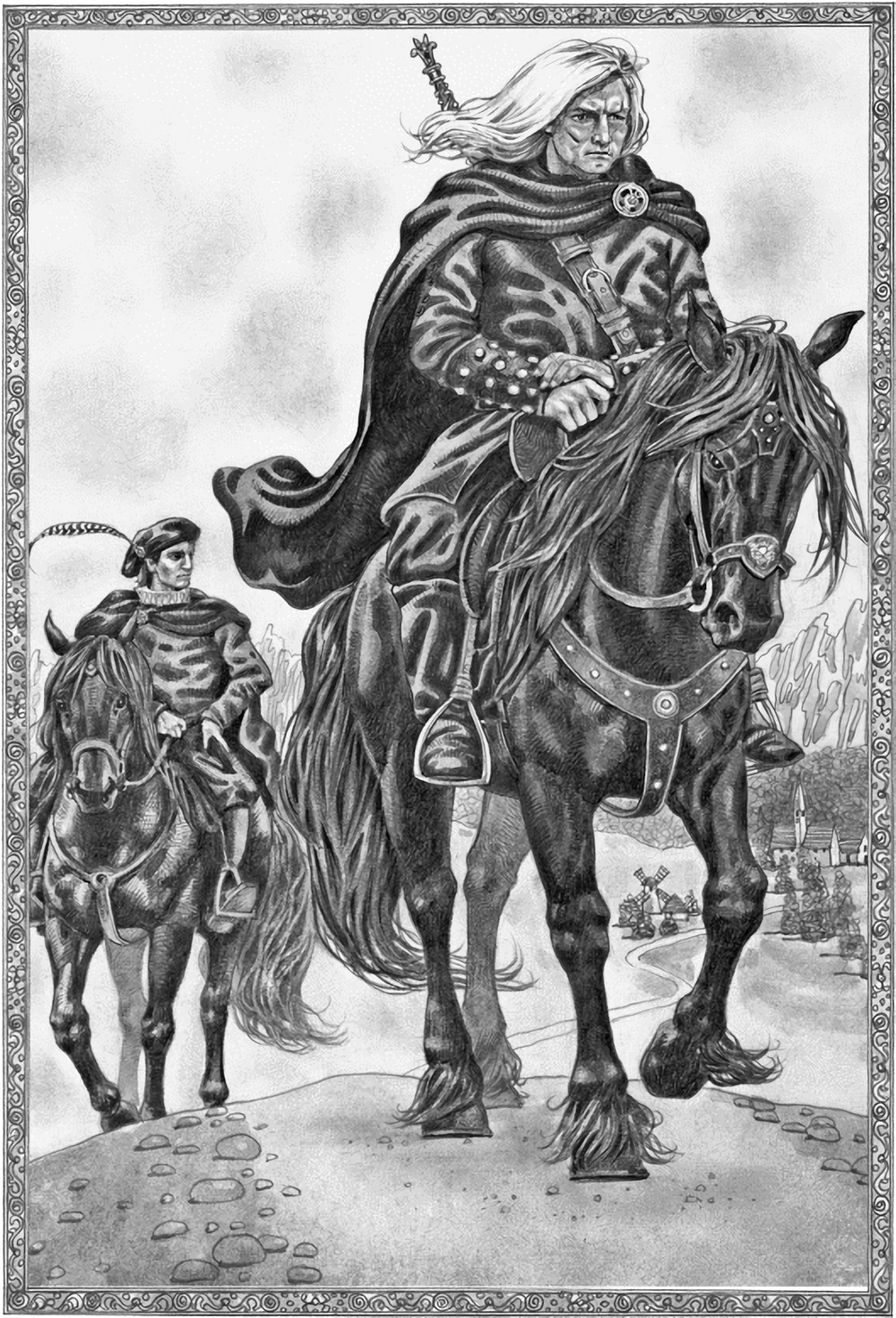 Михаил Новиков, также иллюстрировавший российские издания книг Анджея Сапковского, предпочитал менее реалистичный стиль, напоминающий гравюры из раннего Средневековья. Впрочем, судя по костюму Цири, уходящей от Дикой Охоты, и наряда самого Геральта, герои по-прежнему живут хотя бы в Ренессансе.