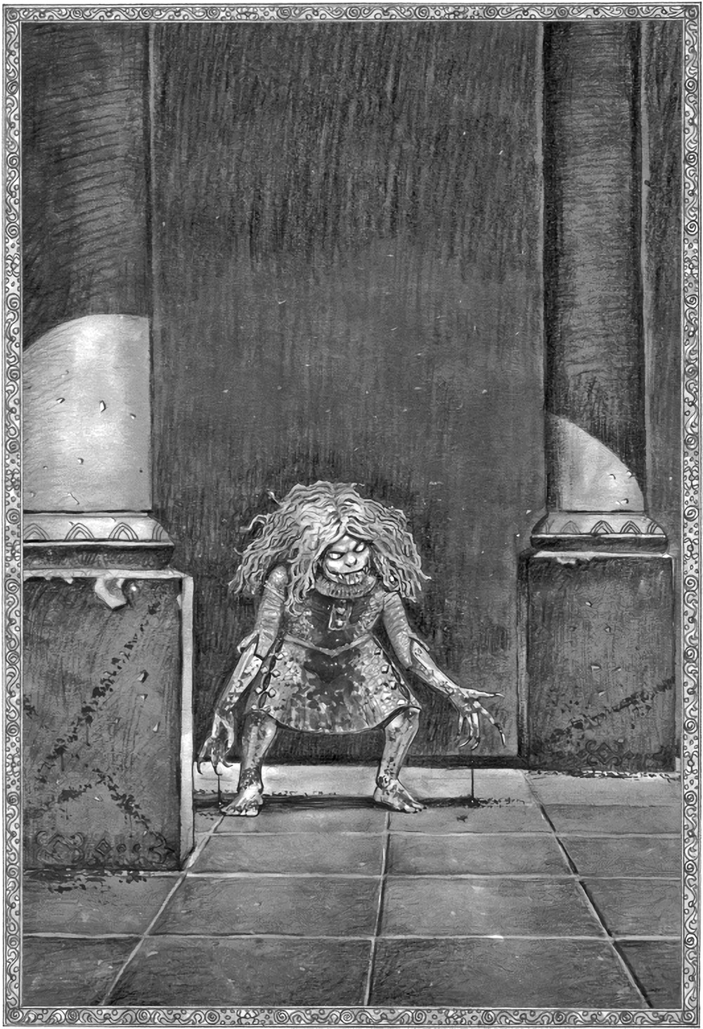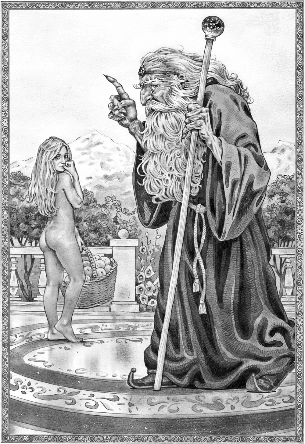 А вот так художники представляют крик принцессы Паветты и Геральта с Мышовуром, пытающихся ему противостоять. Интересно, что и у Александра Продана (первые две работы) и у Дениса Гордеева (третий арт) ведьмак и друид одеты примерно одинаково.