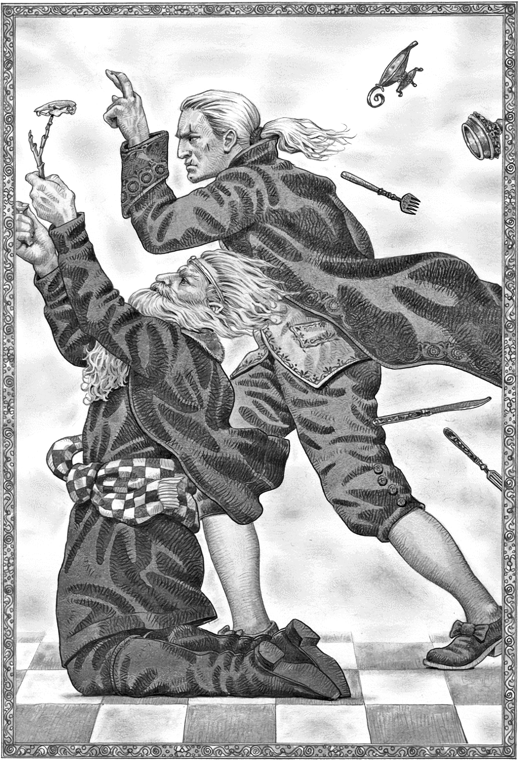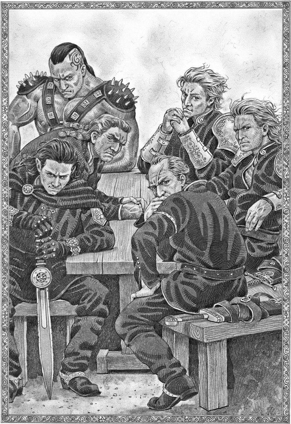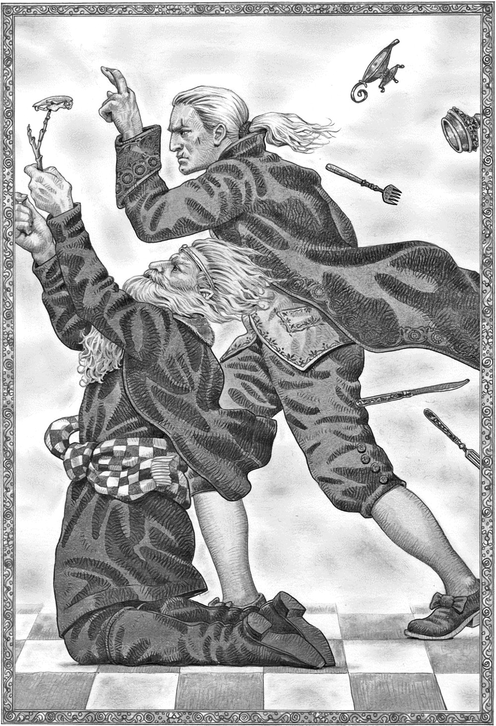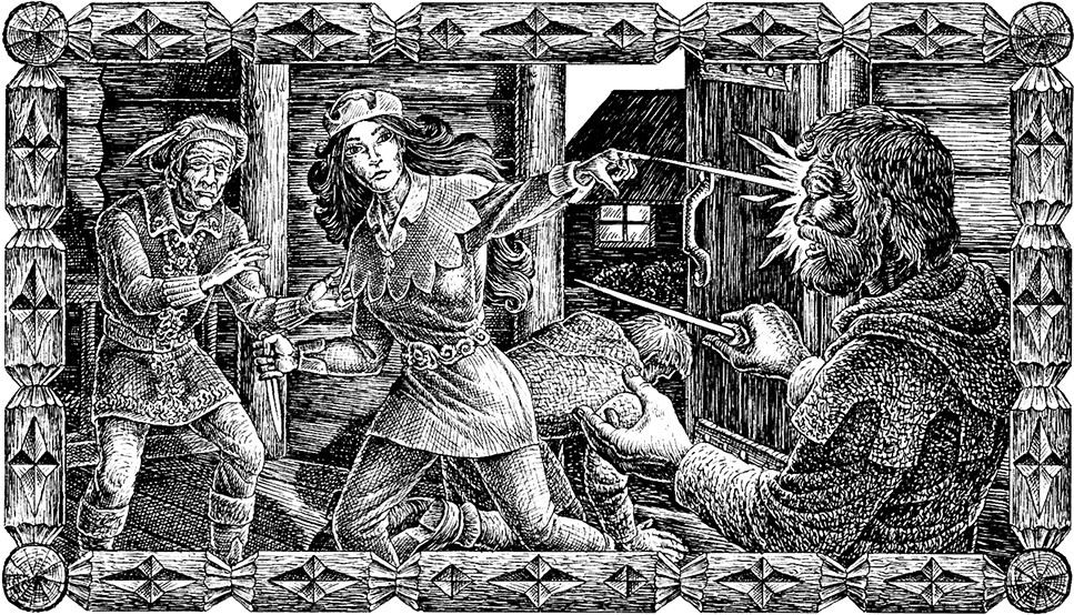 Ниже мы собрали еще несколько работ Михаила Новикова и Александра Продана из иллюстраций к различным книгам о Геральте. Попробуете опознать сцены, которые изобразили художники? Подсказка: на первом арте Михаила Геральт сражается с Вильгефорцем из Роггевеена.