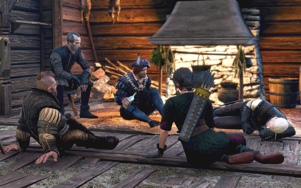 Геральт, Лютик, Мильва и команда знакомятся с самогоном Региса