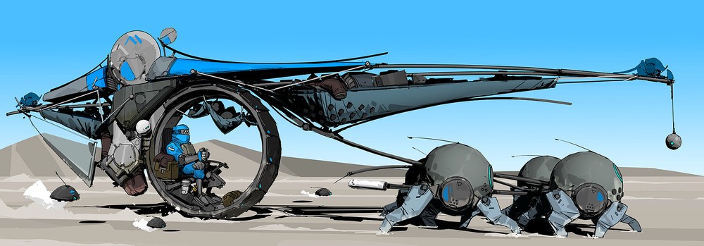 Британский концепт-художник Даррен Бартли уже несколько лет развивает футуристическую вселенную Tribal World. Технологии здесь шагнули вперед: это мир с летающими кораблями и гигантскими движущимися городами.