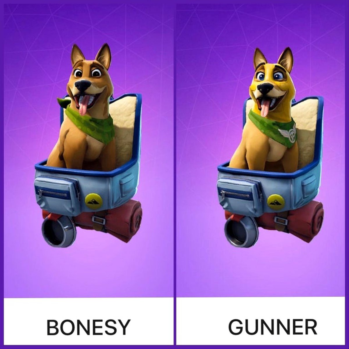 Ганнер очень похож на Бонси, другого питомца, добавленного в игру одновременно со стартом шестого сезона. Отличий минимум: на морду Ганнера надета желтая лыжная маска, которую непросто заметить, а платок на шее пса украшен логотипом.