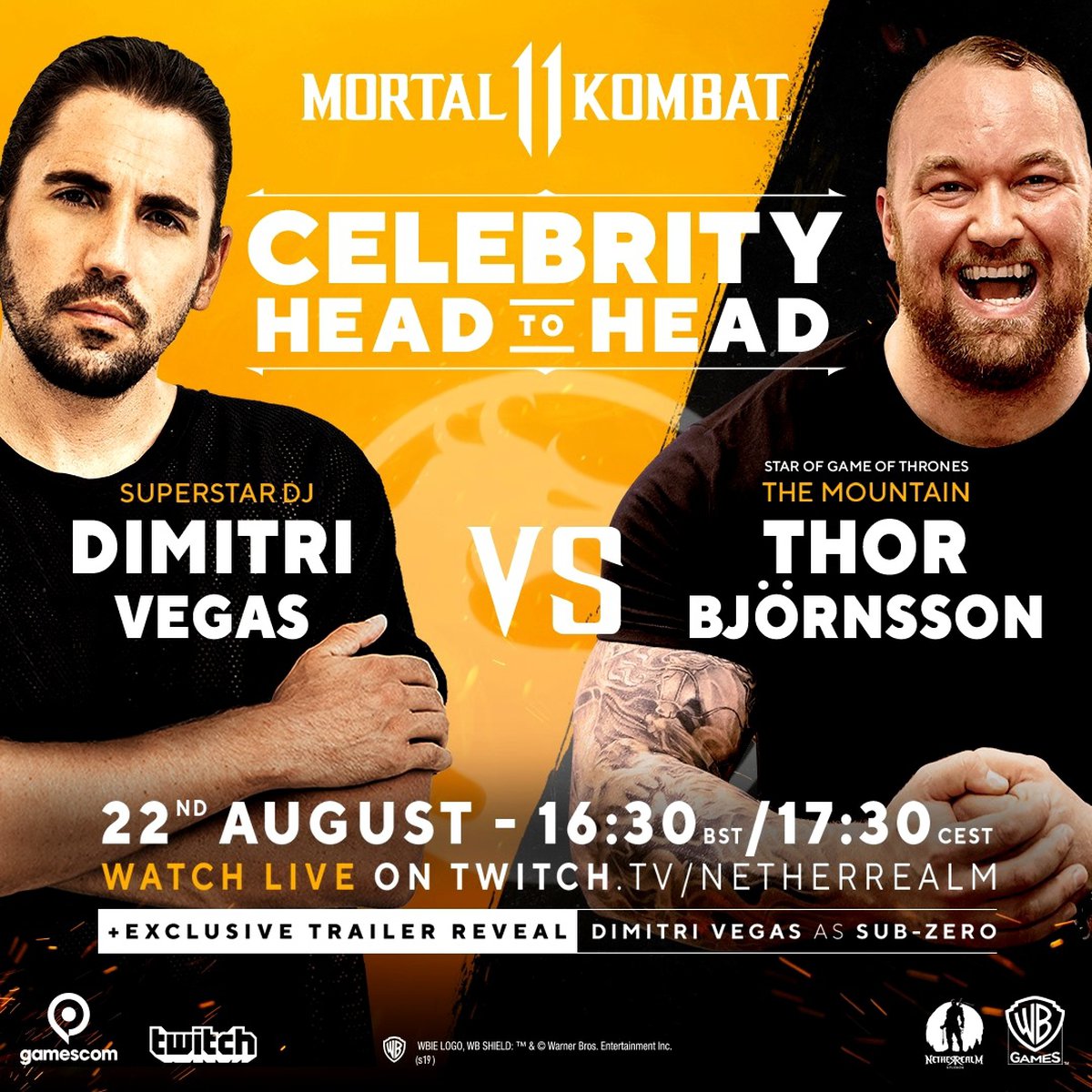 Warner Bros. и NetherRealm Studios проведут на выставке Gamescom матч в Mortal Kombat 11 с участием двух знаменитостей: диджея Dimitri Vegas и атлета Хафтора Бьернсона, игравшего Григора Клигана в «Игре престолов».