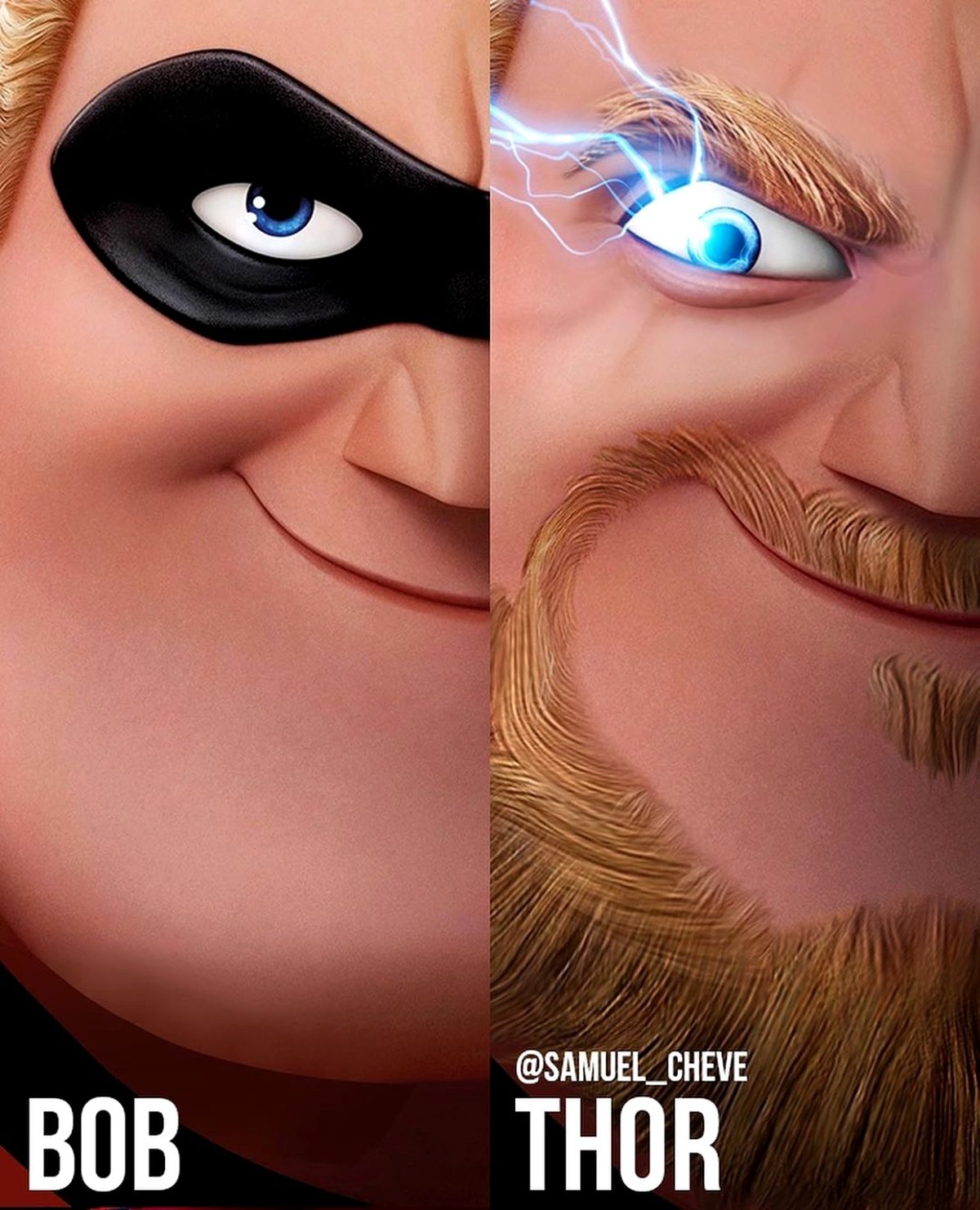 В прошлом году французский художник Сэмюэль Шеве запустил арт-проект по превращению персонажей мультфильмов в героев киновселенной Marvel. За это время Шеве успел нарисовать пару десятков артов, в основном работая с «Суперсемейкой».