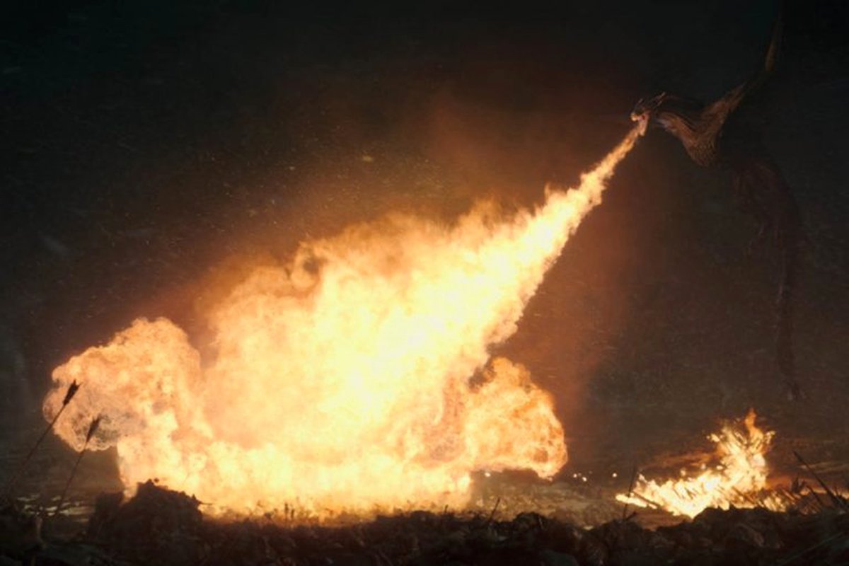 Это ему нипочем, но пламя превращает копье Короля Ночи в драконье стекло; им он убивает Визериона в тот самый момент, когда Бран контролировал разум дракона-зомби. Джон Сноу не может привести Брана в сознание.