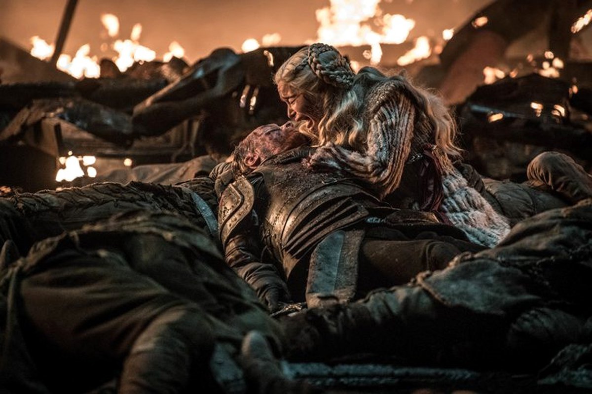 Джон Сноу упал замертво в тот же самый момент, когда огонь Дрогона сжег чардрево. Дейенерис, оплакав его, принимает предложение Тириона и восседает на Железном троне. Теперь она — королева Семи Королевств.